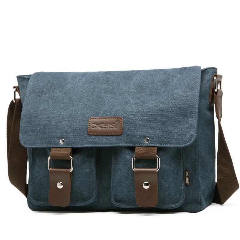 Style: Cool Canvas Leather Mens Simple Casual Bag Shoulder Bag College Bag Messenger Bag for Men