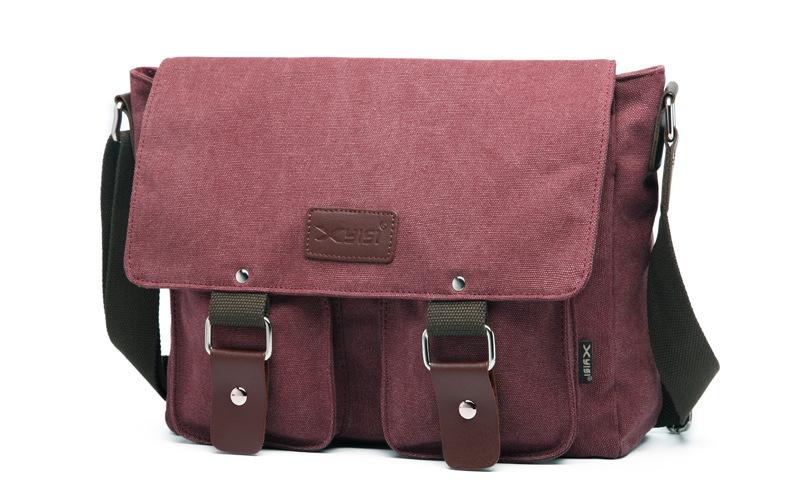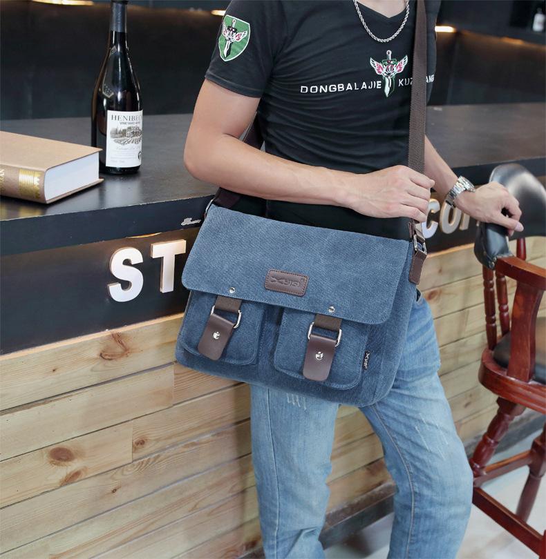 Cool Canvas Leather Mens Black Side Bag Blue Shoulder Bag Red College Bag Messenger Bag for Men