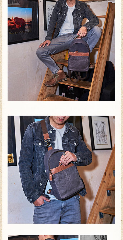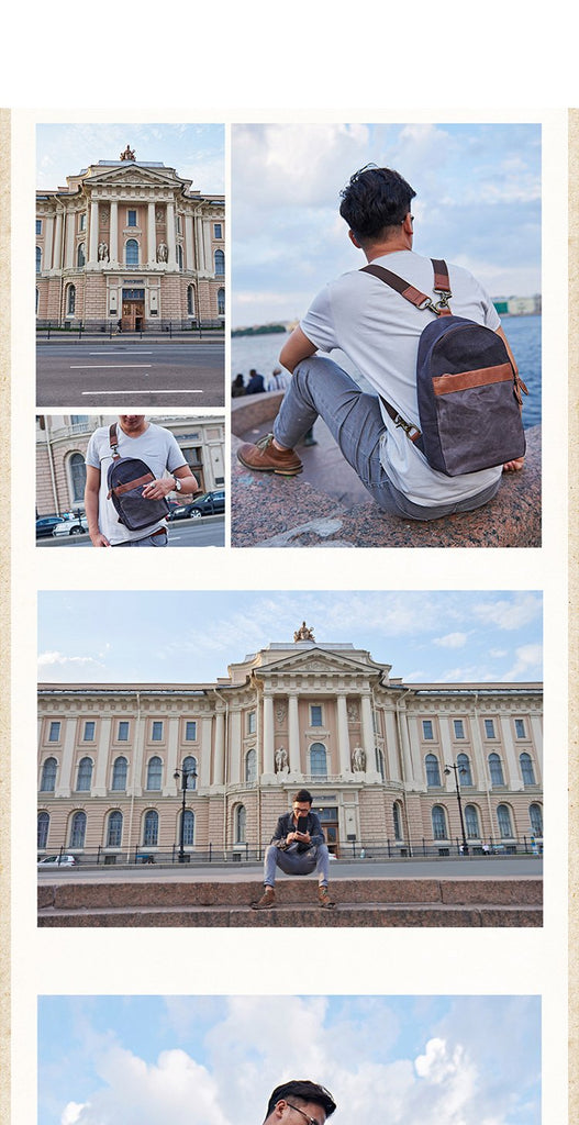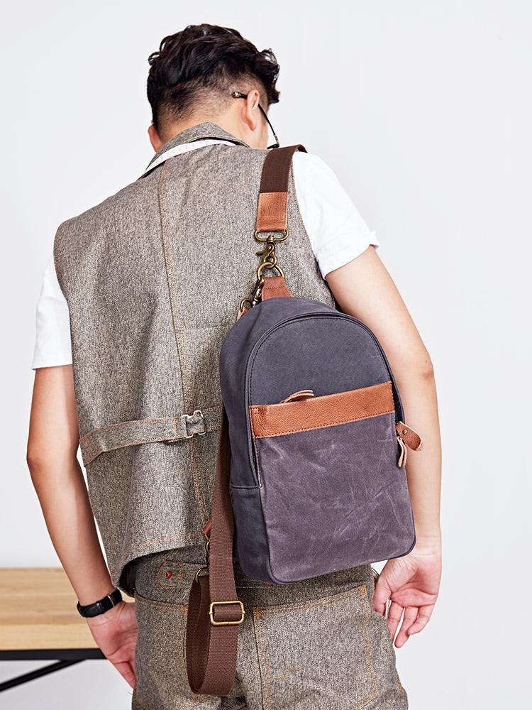 Style: Cool Canvas Mens 10 inches Navy Sling Bag Sling Backpack One Shoulder Pack Chest Bag for men