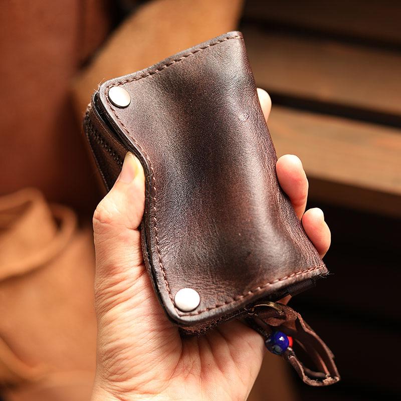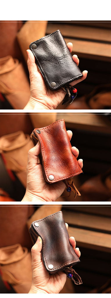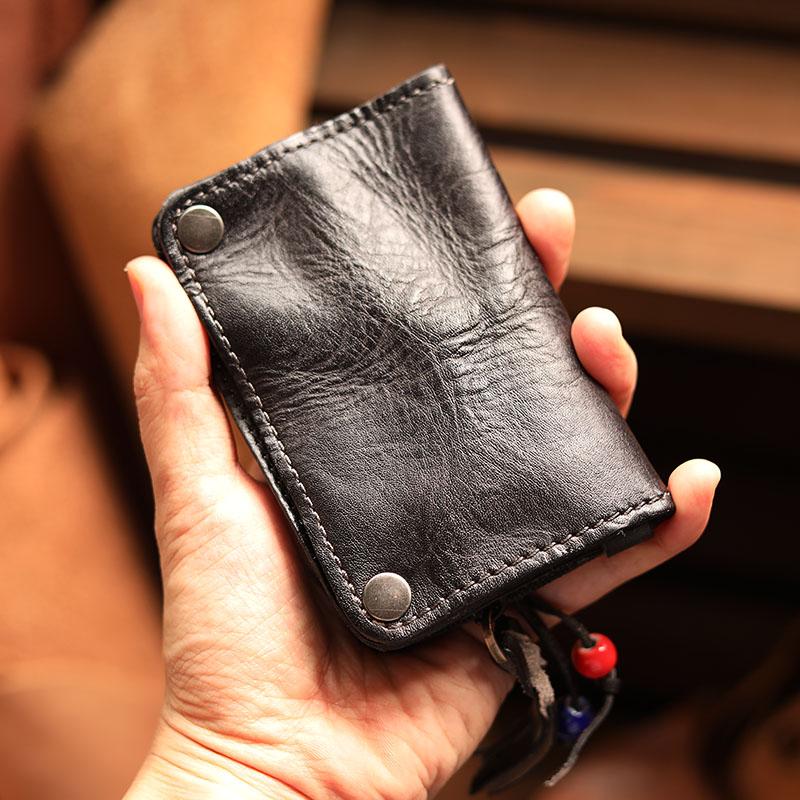 Style: Cool Charcoal Leather Mens Short Wallet Bifold SMall Wallet Black Front Pocket Wallet For Men