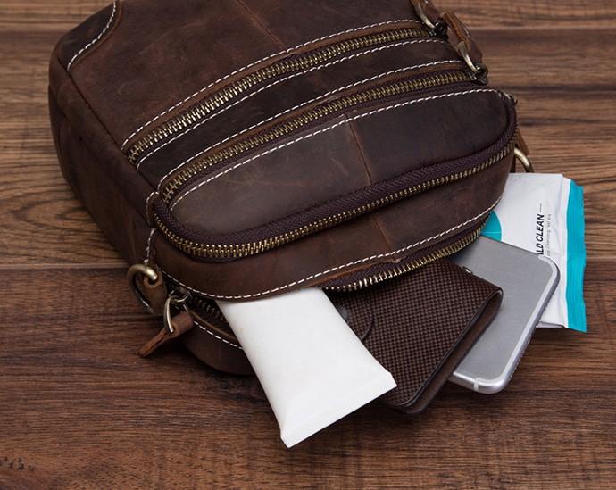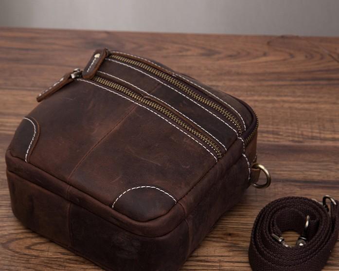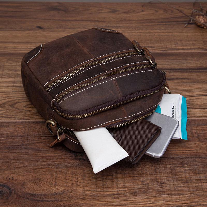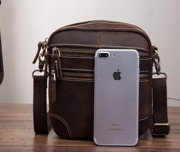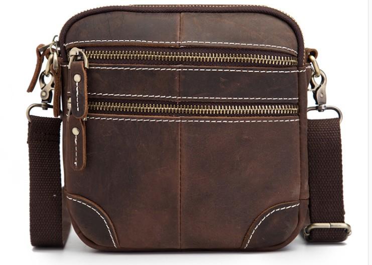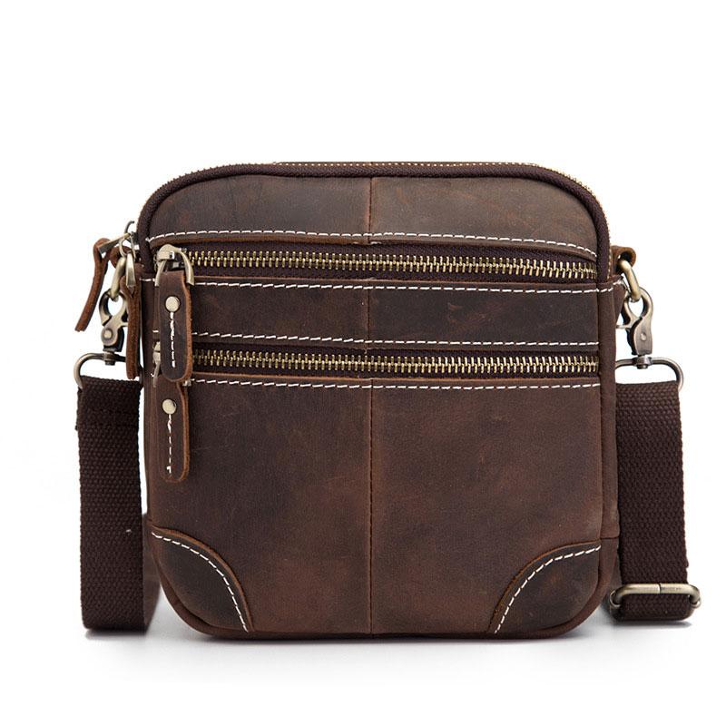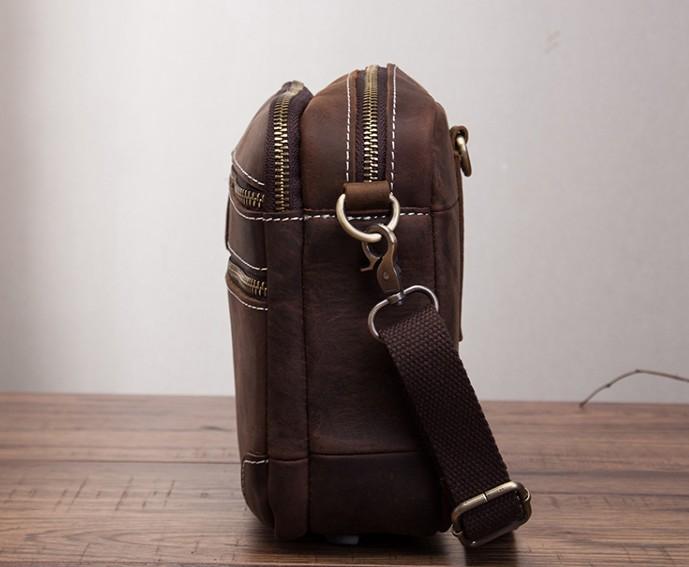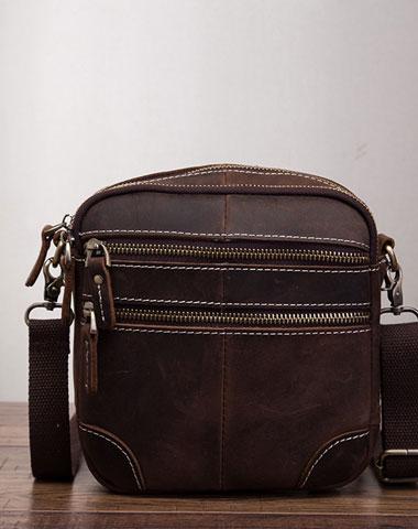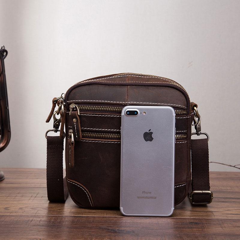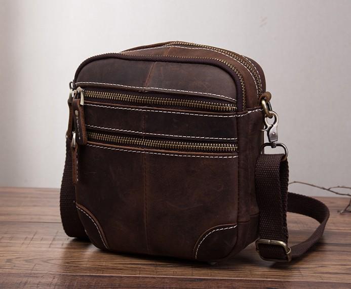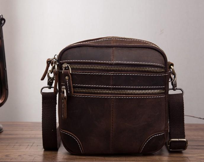 Design: Cool Coffee Leather Mens Small Messenger Bag Cool Side Bag Crossbody Bags for men