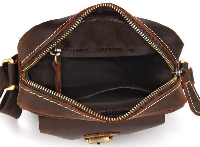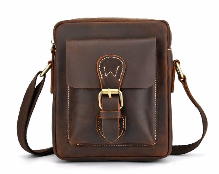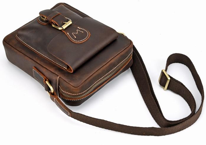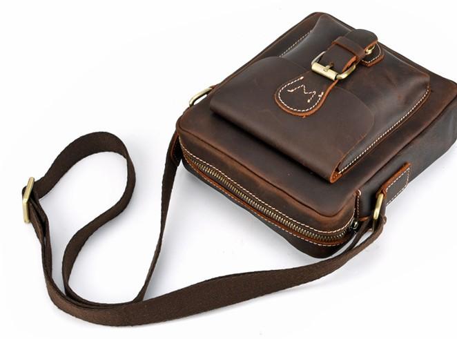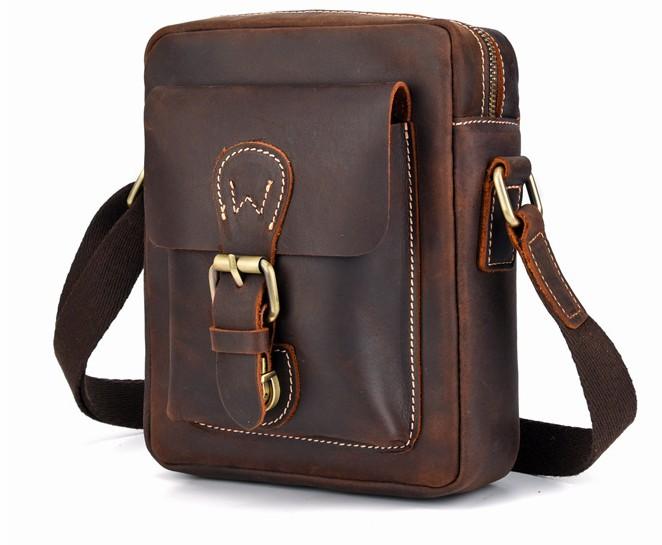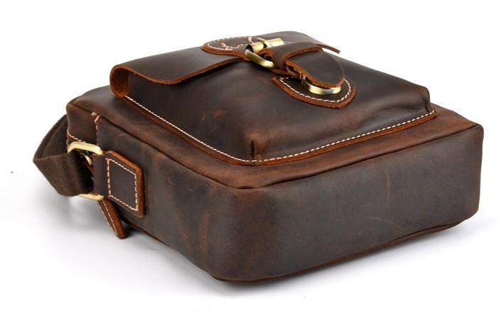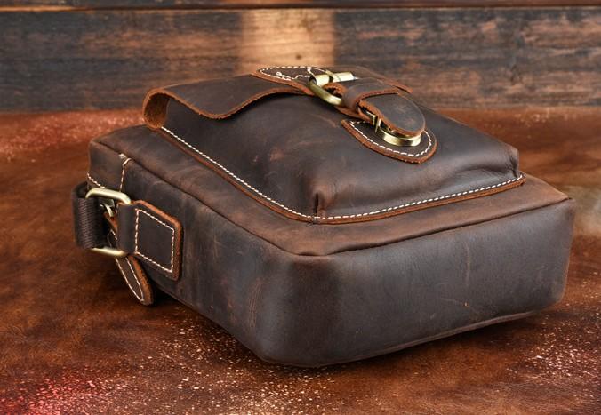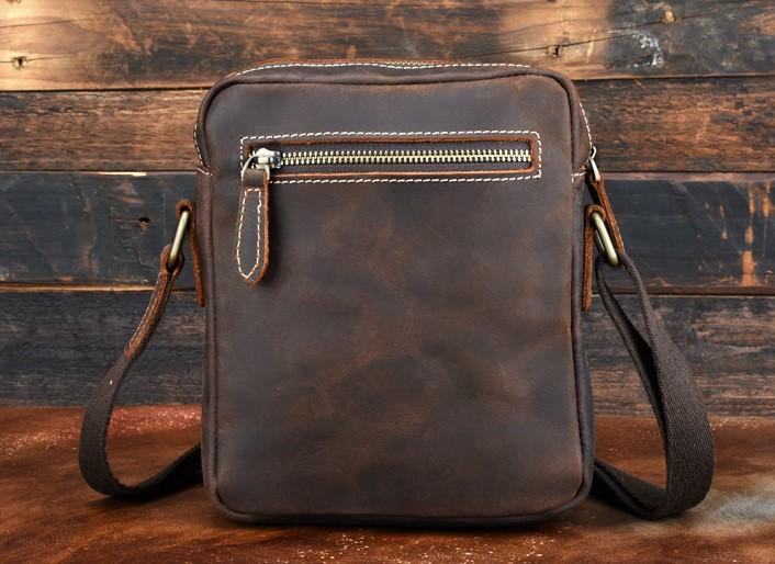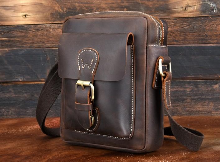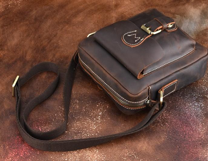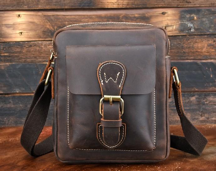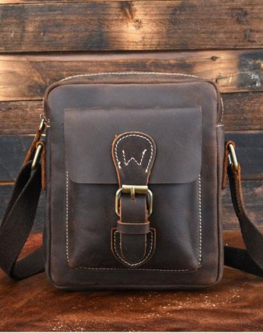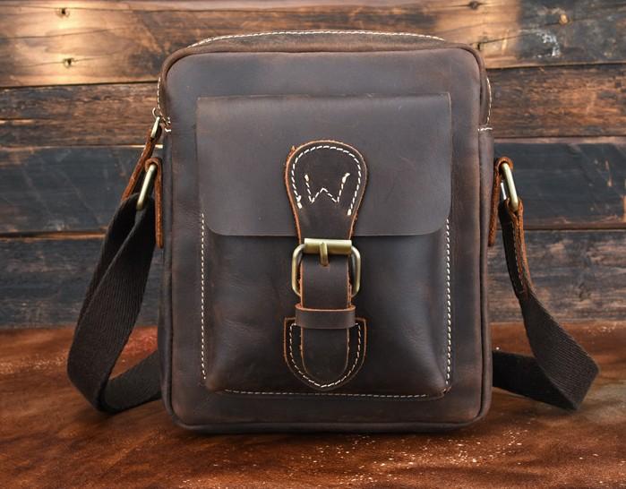 Style: Cool Dark Brown Leather Mens Small Messenger Bags Cool Side Bag Crossbody Bags for men
