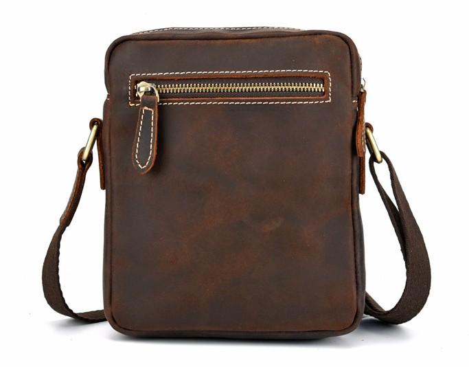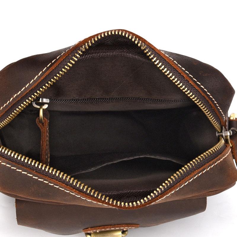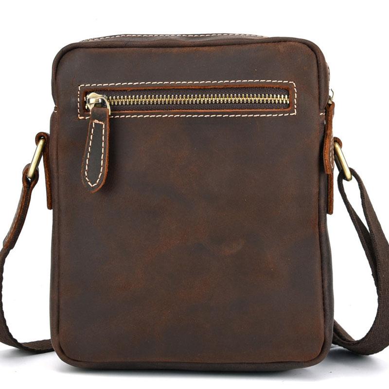 Design: Cool Dark Brown Leather Mens Small Messenger Bags Cool Side Bag Crossbody Bags for men