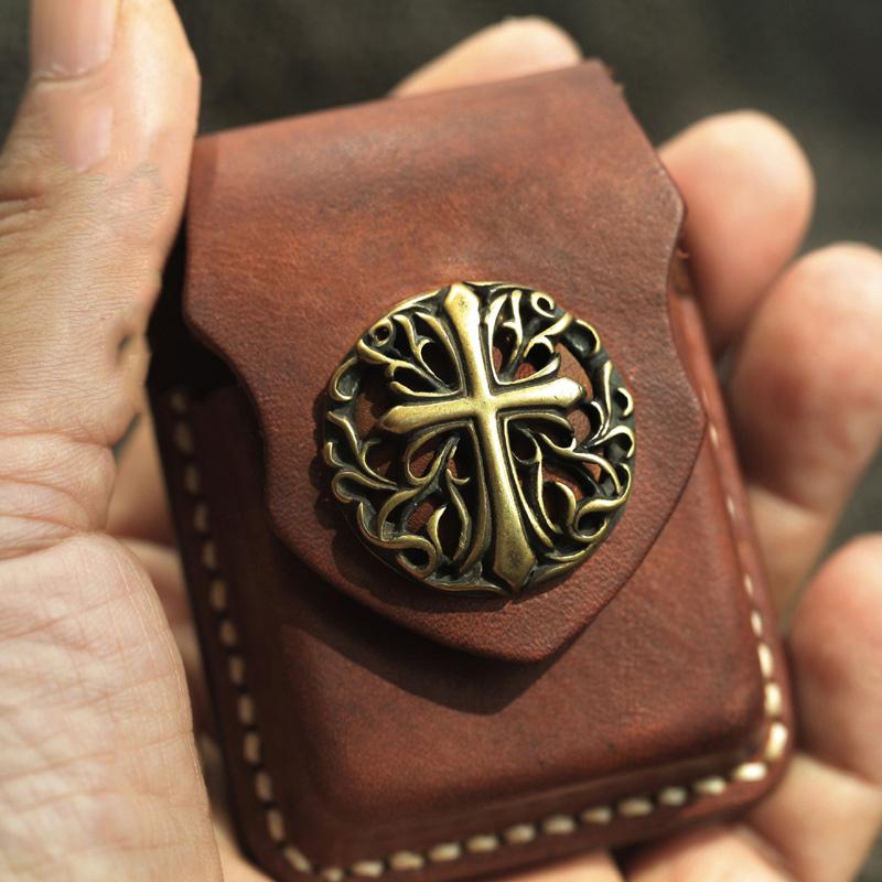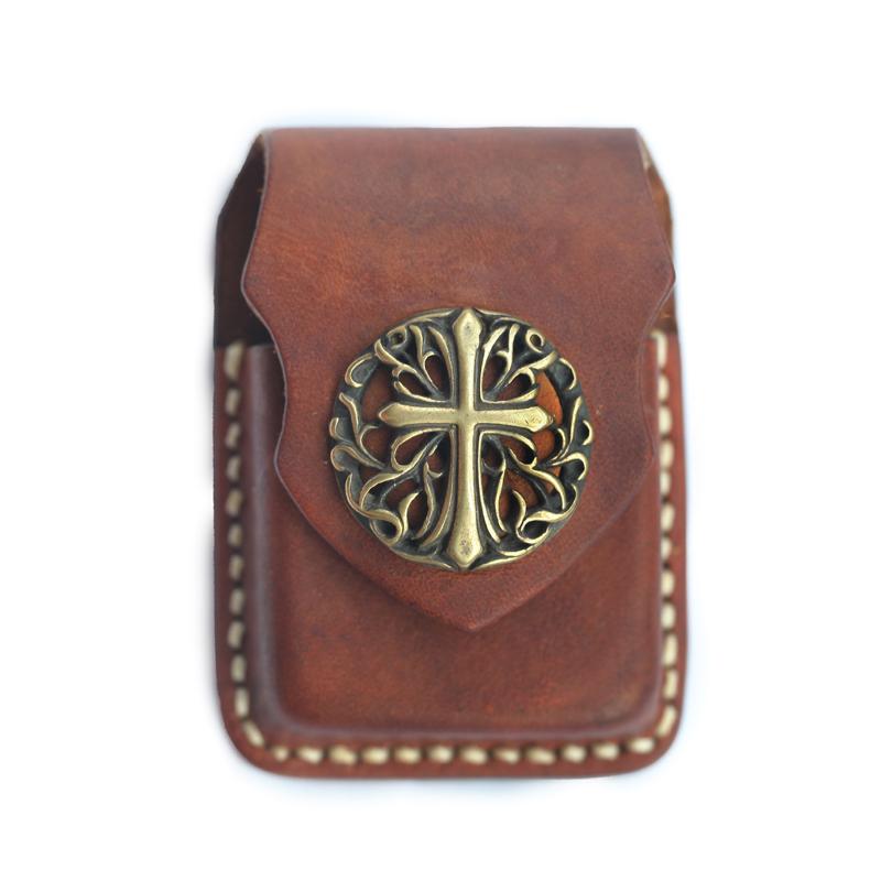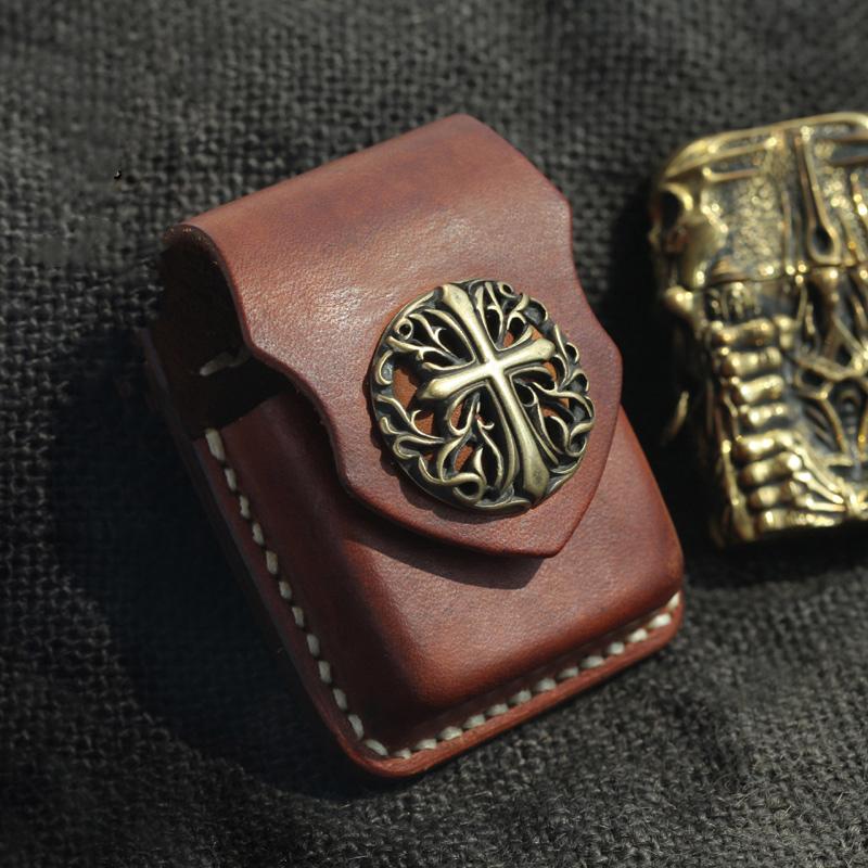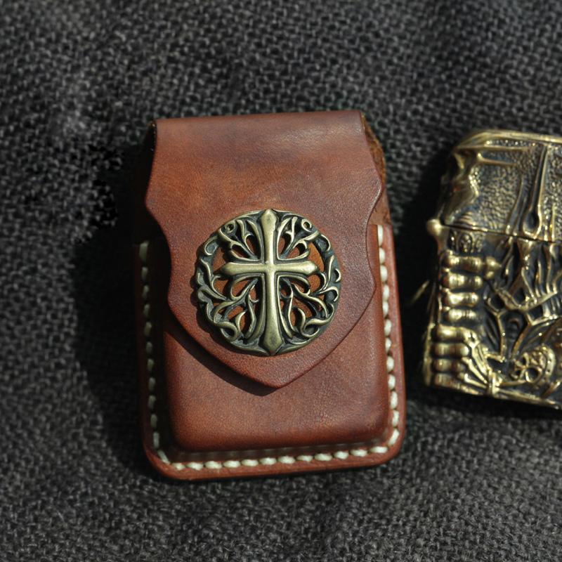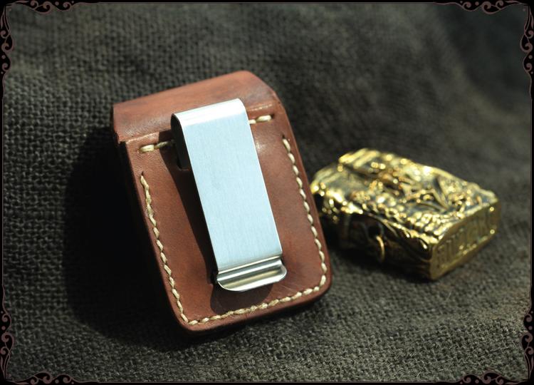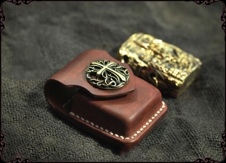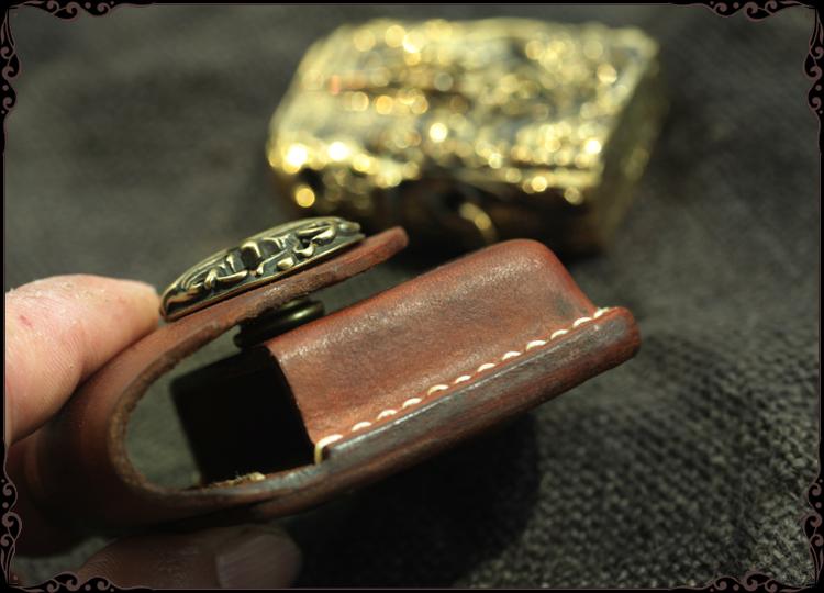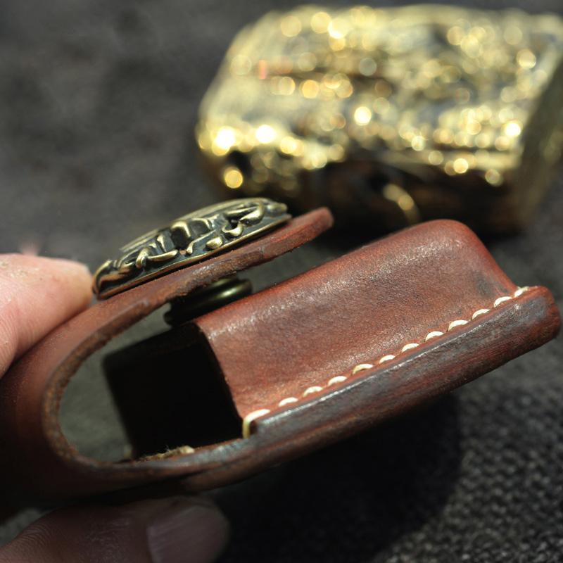 Cool Handmade Brown Leather Mens Zippo Lighter Case Heavy Armor Lighter Holder for Men