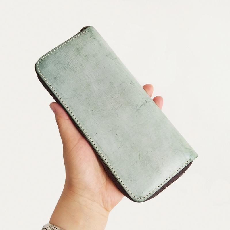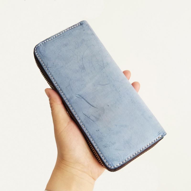 Style: Cool Handmade Mens Blue Long Wallet Red Bifold Card Wallet Zipper Clutch Wallet For Men