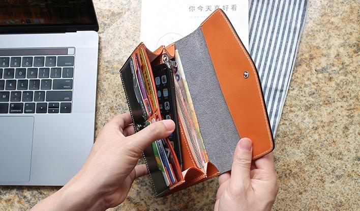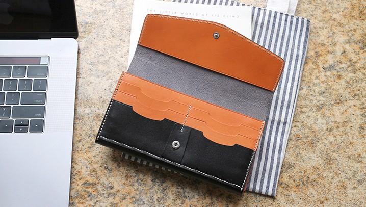 Design: Cool Handmade Mens Leather Long Wallet Envelope Long Bifold Wallet for Men