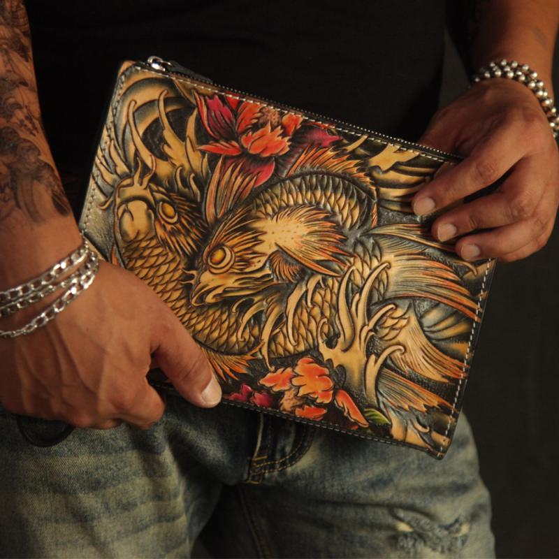 Style: Cool Handmade Tooled Leather Lion Clutch Wallet Wristlet Bag Clutch Purse For Men