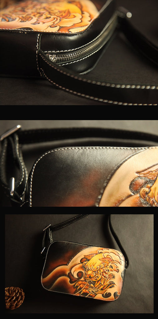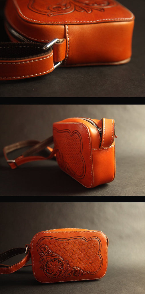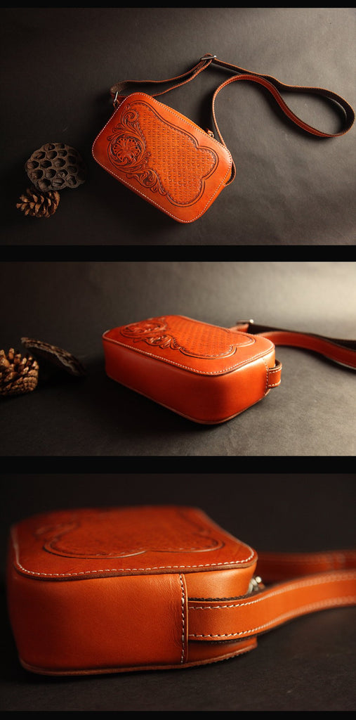 Design: Cool Handmade Floral Tooled Leather Small Postman Bag Messenger Bag Courier Bag For Men