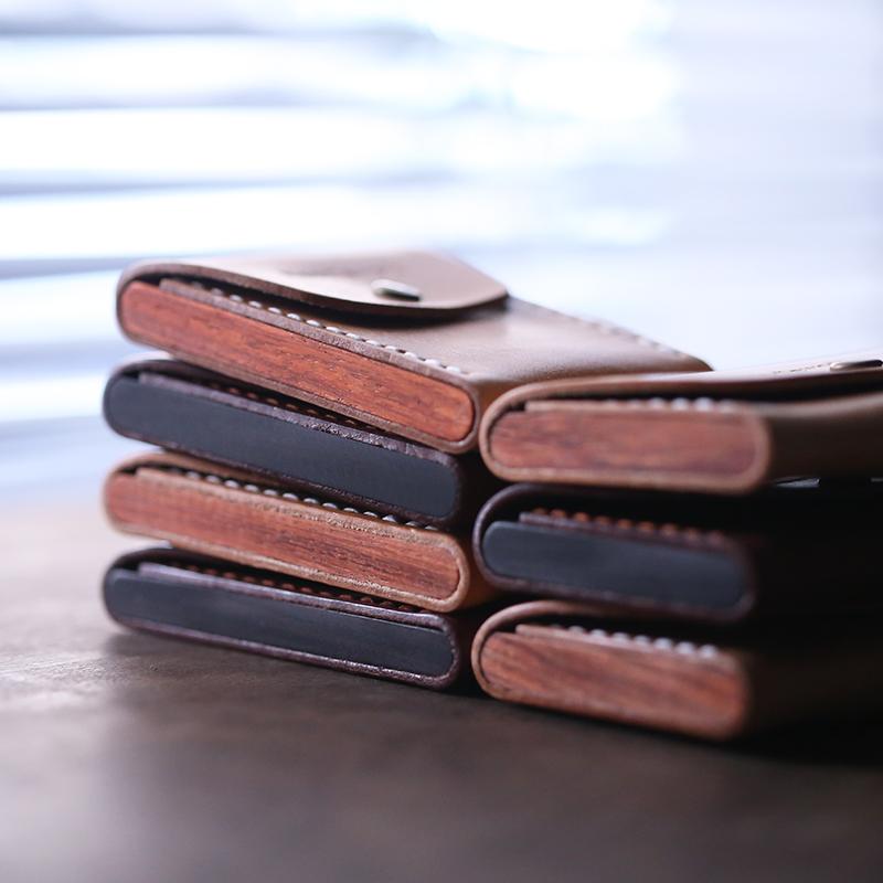 Style: Cool Handmade Wooden Leather Mens Wallet Small Card Holder Coin Wallet for Men