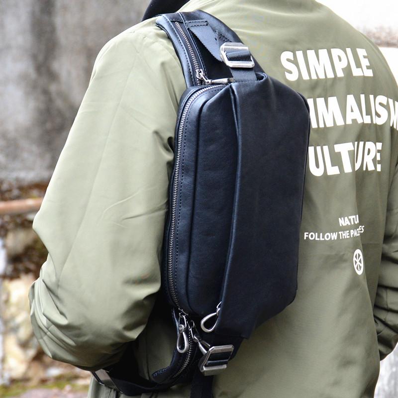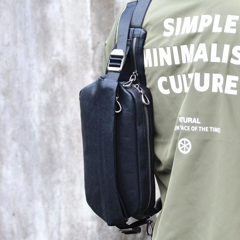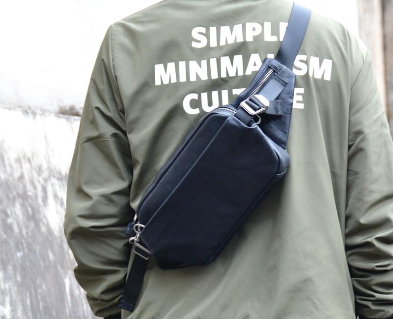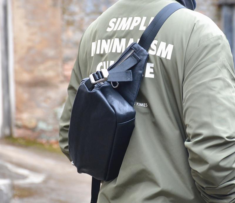Style: Cool Leather Black Fanny Pack Men's Black Chest Bag Hip Bag Small Waist Bag For Men
