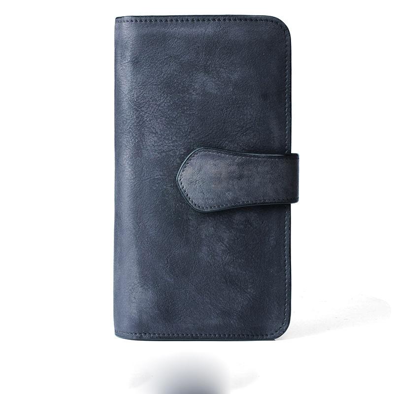 Design: Cool Leather Brown Mens Long Wallet Blue Buckled Long Wallet Trifold Clutch Wallet for Men