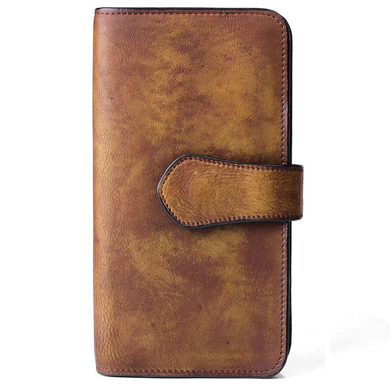 Style:Cool Leather Brown Mens Long Wallet Blue Buckled Long Wallet Trifold Clutch Wallet for Men