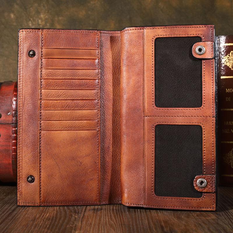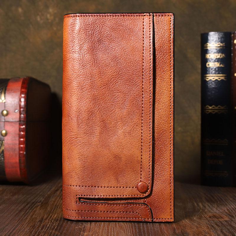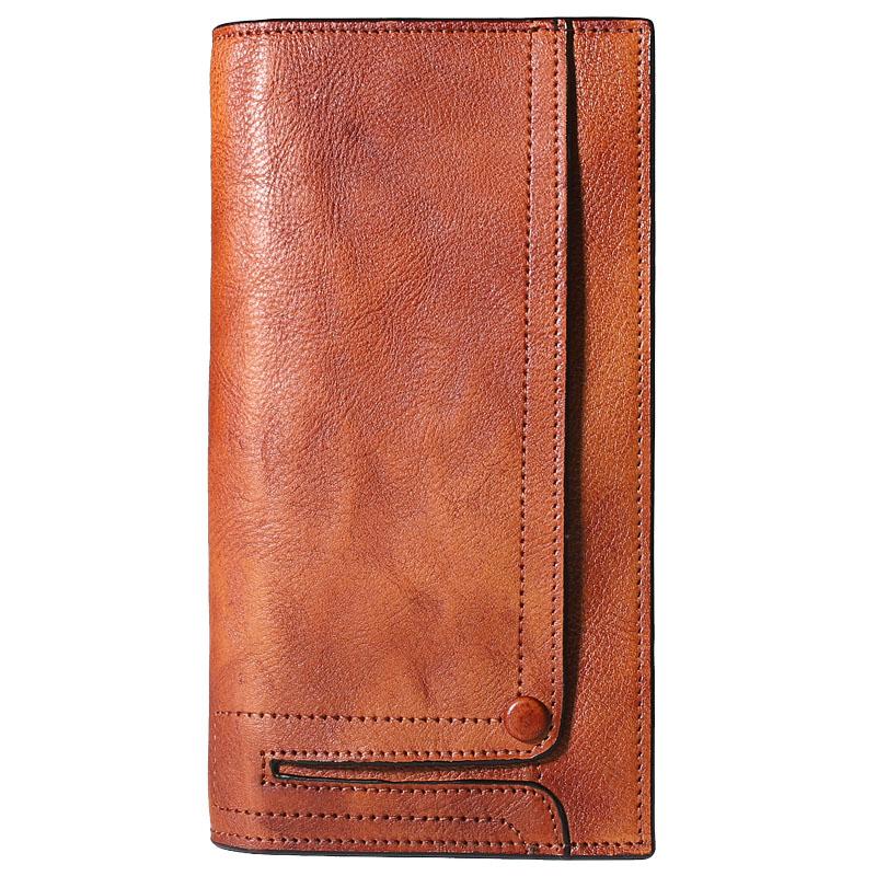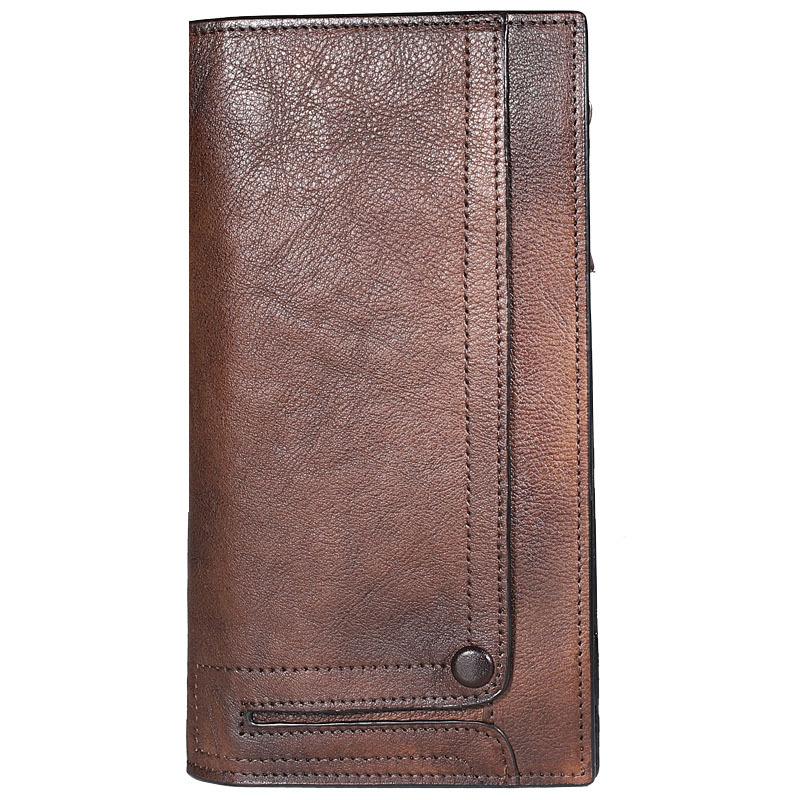 Design: Cool Leather Brown Mens Long Wallet Dark Gray Buckled Long Wallet Bifold Clutch Wallet Card Wallet for Men