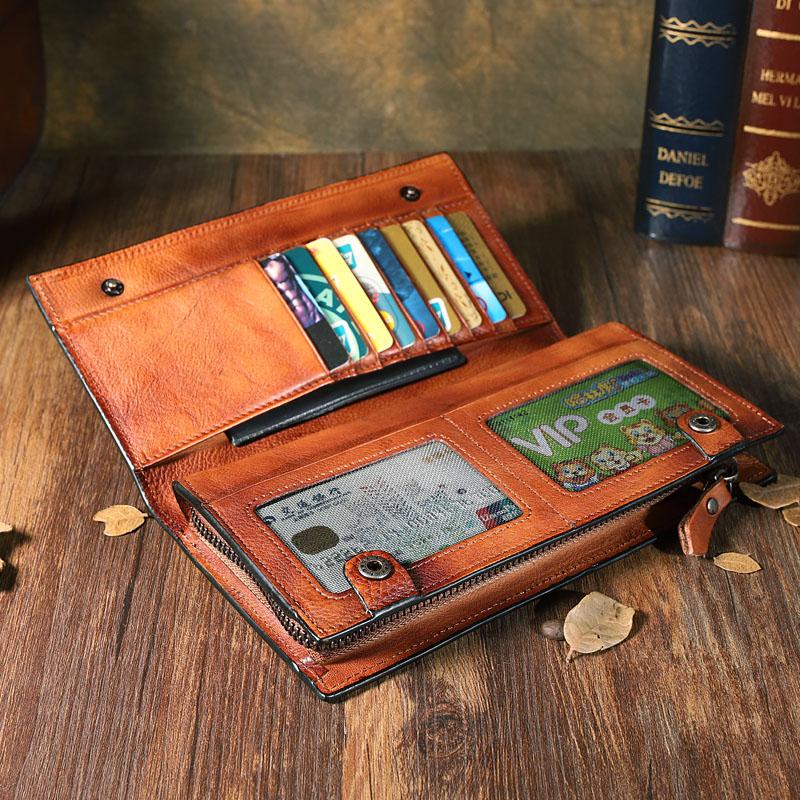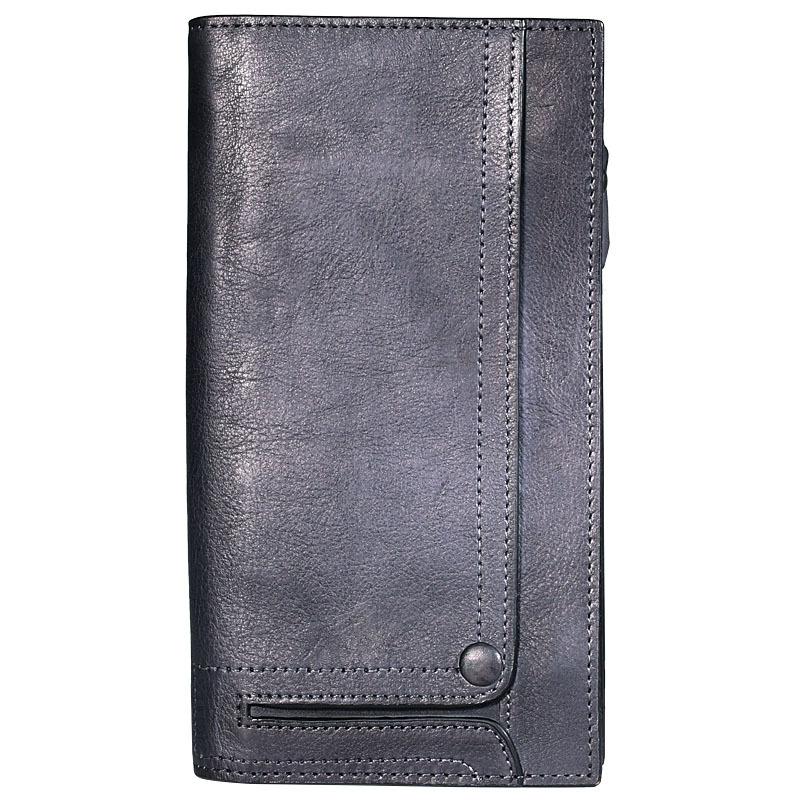 Style:Cool Leather Brown Mens Long Wallet Dark Gray Buckled Long Wallet Bifold Clutch Wallet Card Wallet for Men