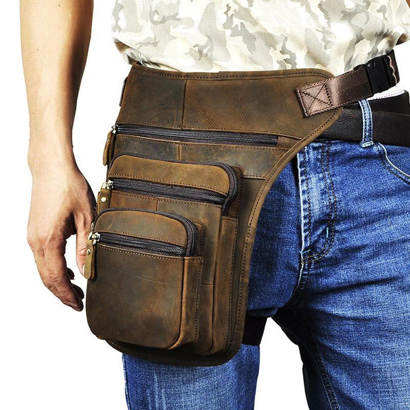 Design: Cool Leather Drop Leg Bag Belt Pouch Mens Waist Bag Shoulder Bag for Men