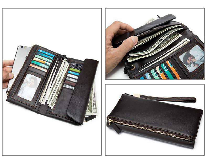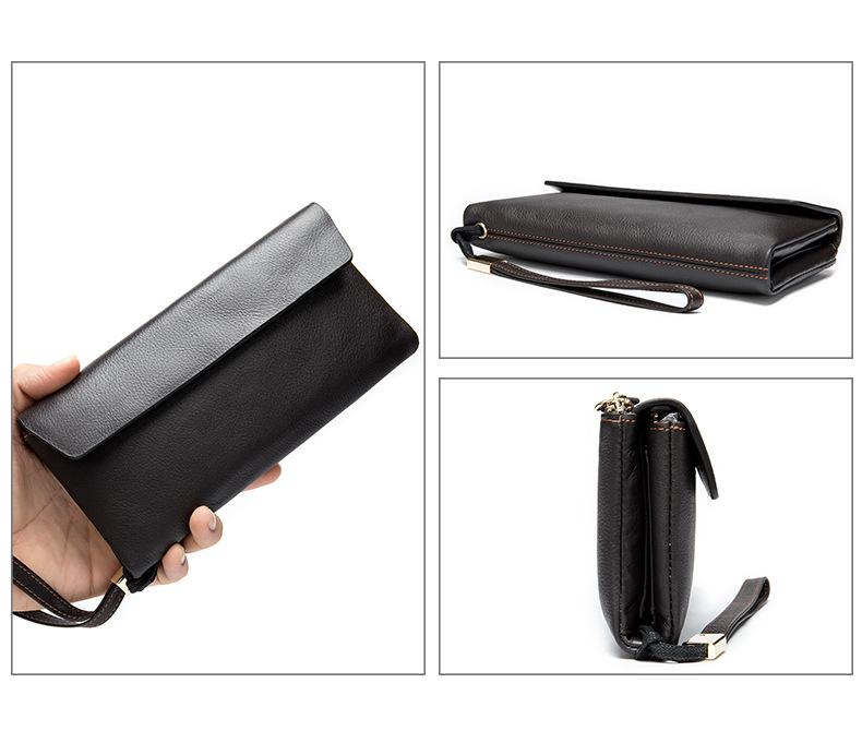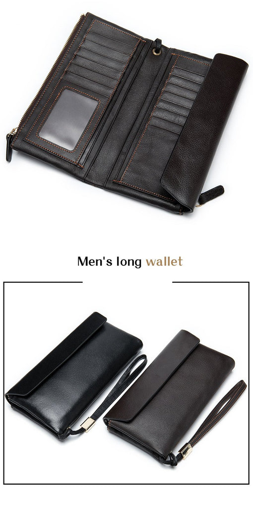 Design:Cool Leather Long Wallet for Men Black Envelope Wallet Wristlet Bag Clutch Bag For Men
