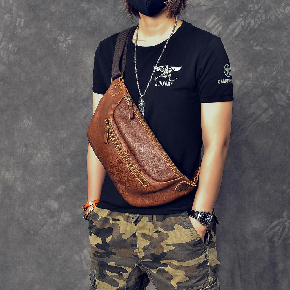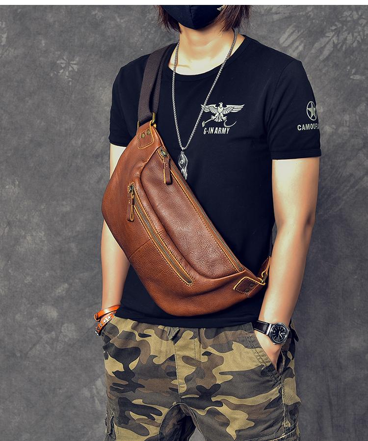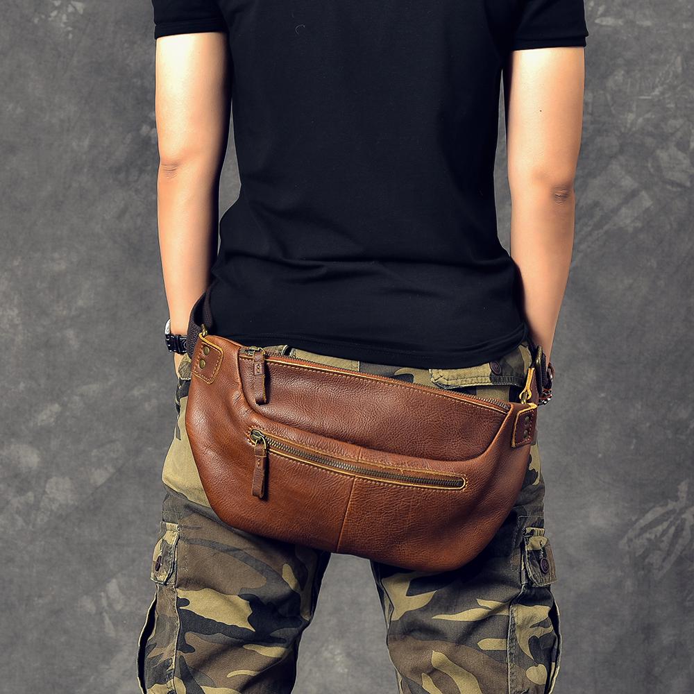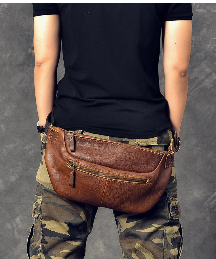 Style: Cool Leather Mens 8" Large Brown Fanny Pack Waist Bag Hip Bag Chest Bag for Men