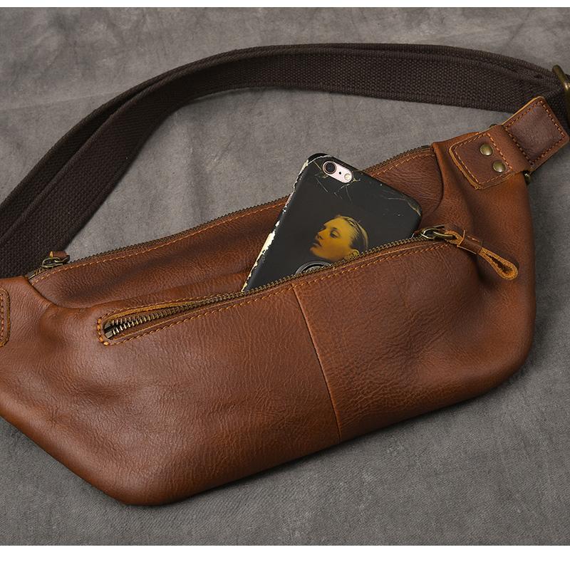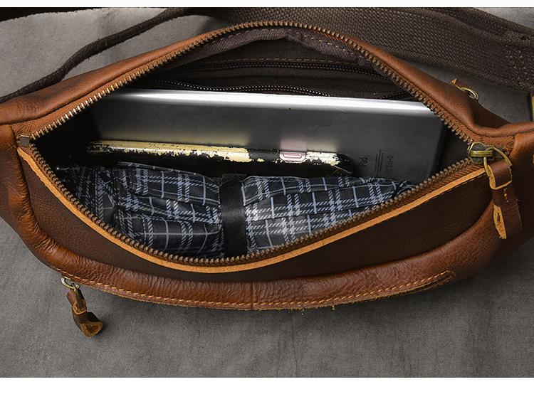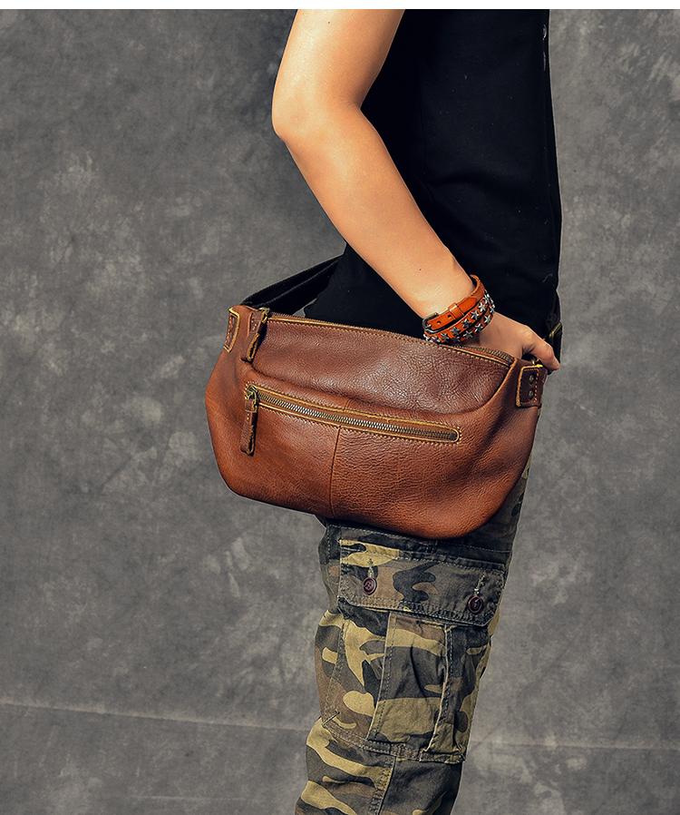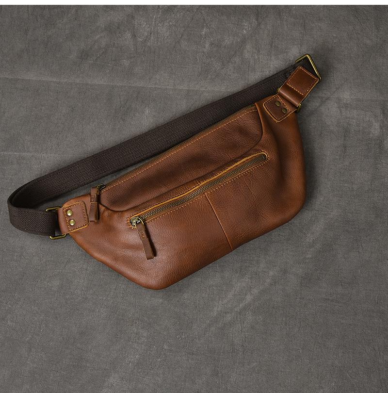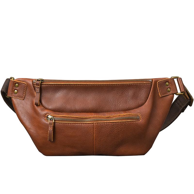 Style: Cool Leather Mens 8" Large Brown Fanny Pack Waist Bag Hip Bag Chest Bag for Men