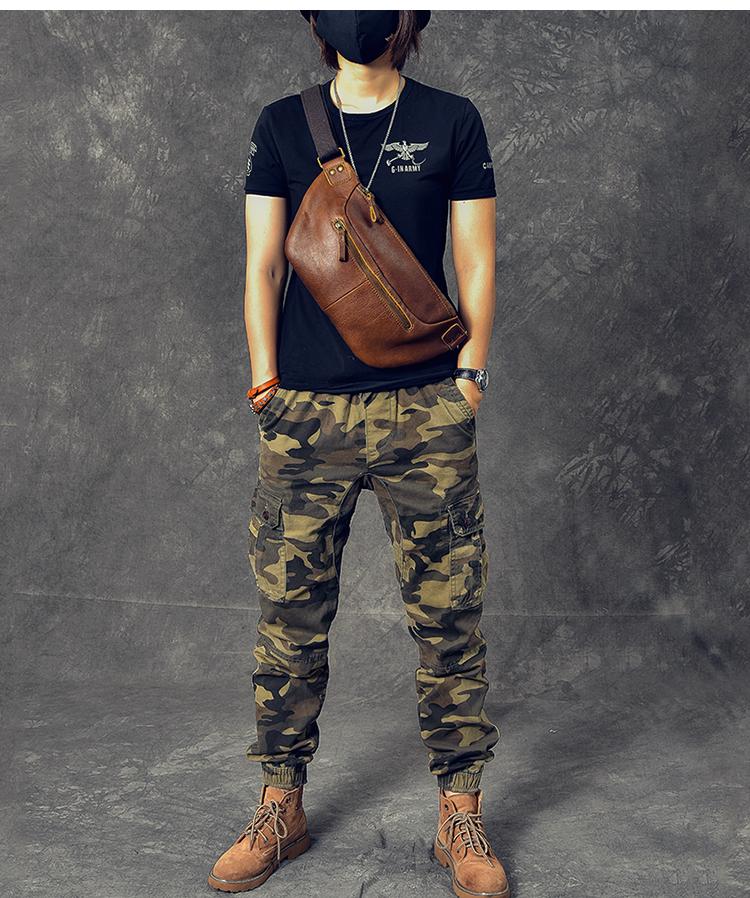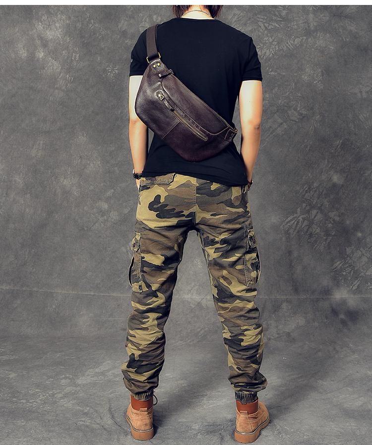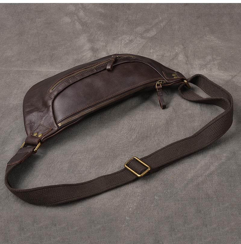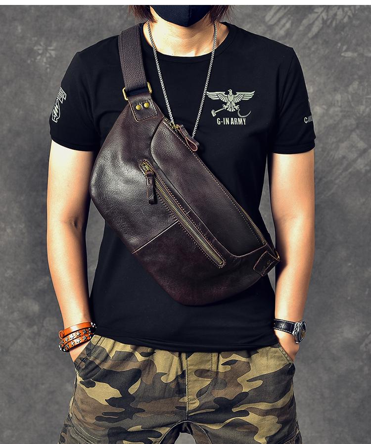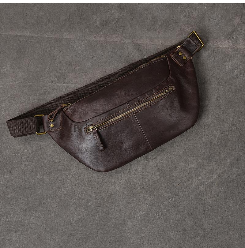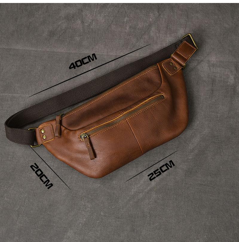 Design: Cool Leather Mens 8" Large Brown Fanny Pack Waist Bag Hip Bag Chest Bag for Men