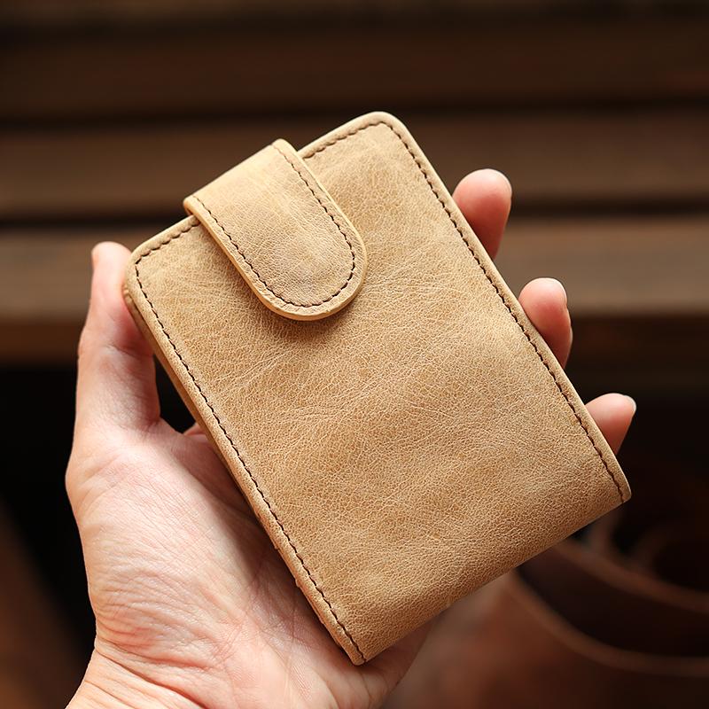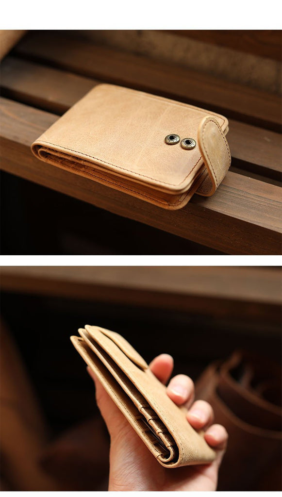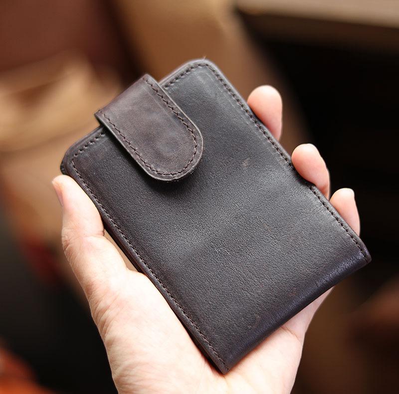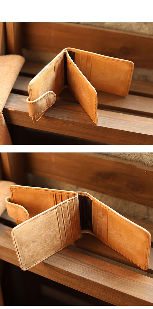 Cool Leather Mens Card billfold Wallet Trifold SMall Bifold License Wallet Camel Card Holders For Men