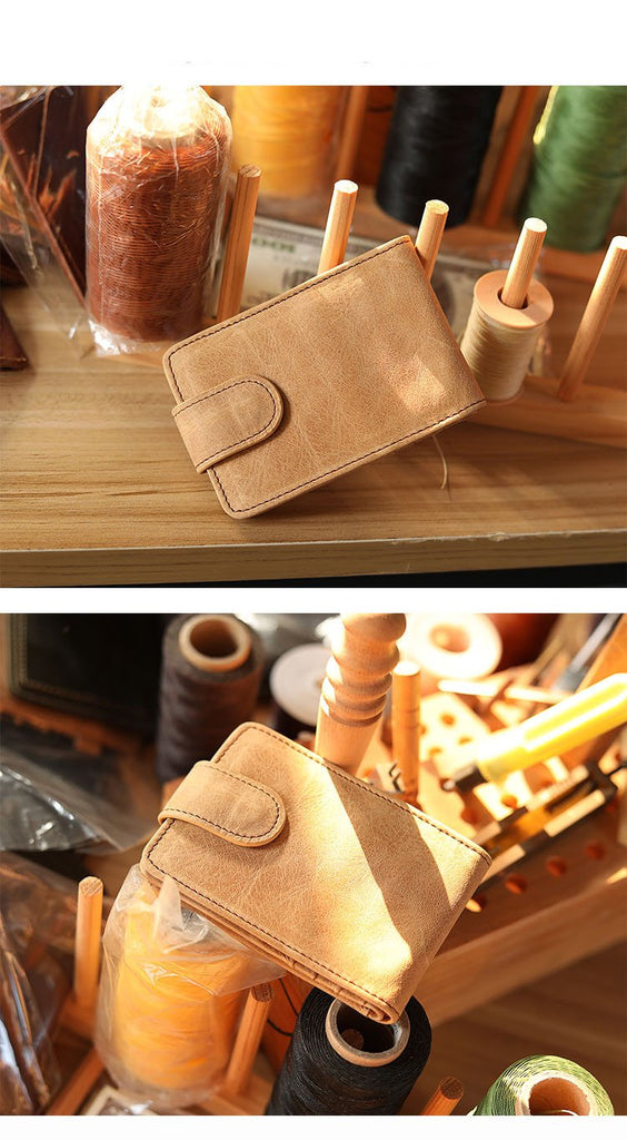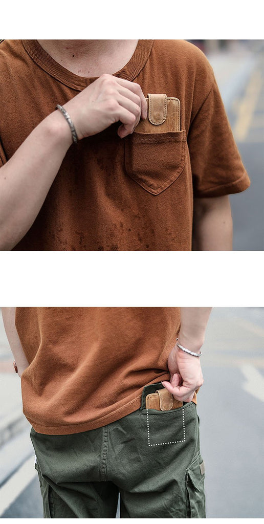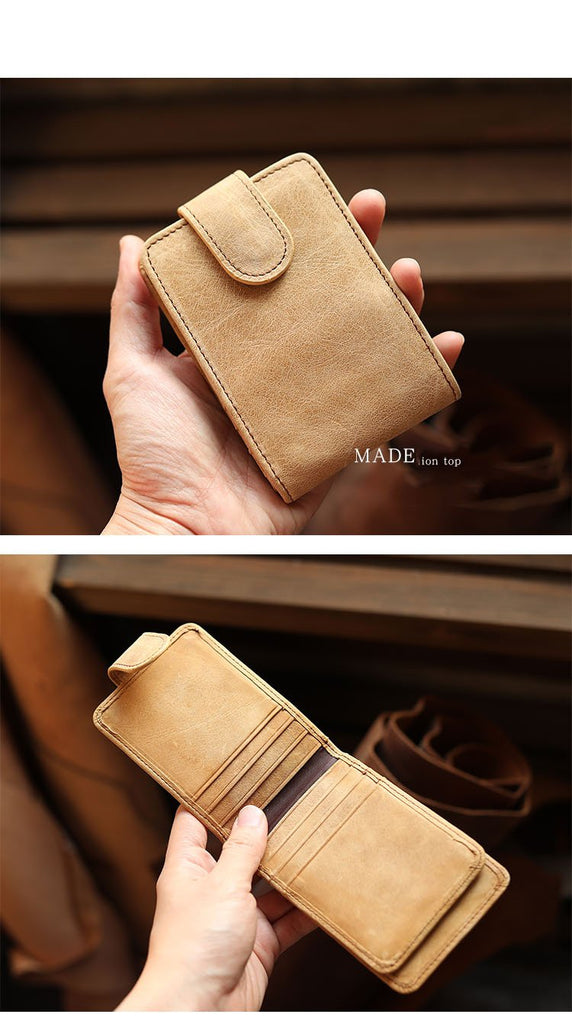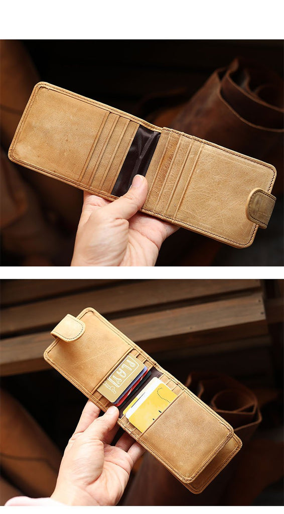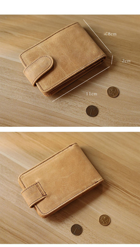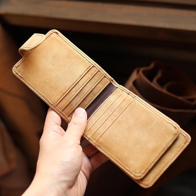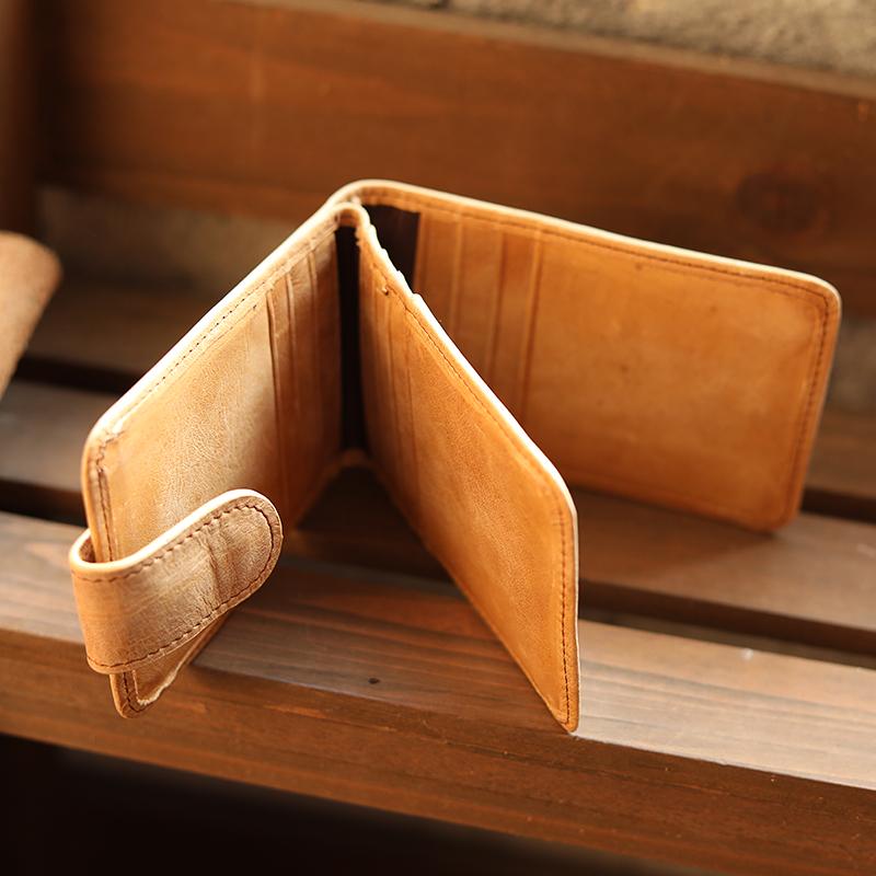 Design: Cool Leather Mens Card billfold Wallet Bifold SMall License Wallet Light Brown Front Pocket Wallets For Men