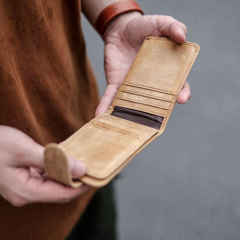 Style: Cool Leather Mens Card billfold Wallet Bifold SMall License Wallet Light Brown Front Pocket Wallets For Men