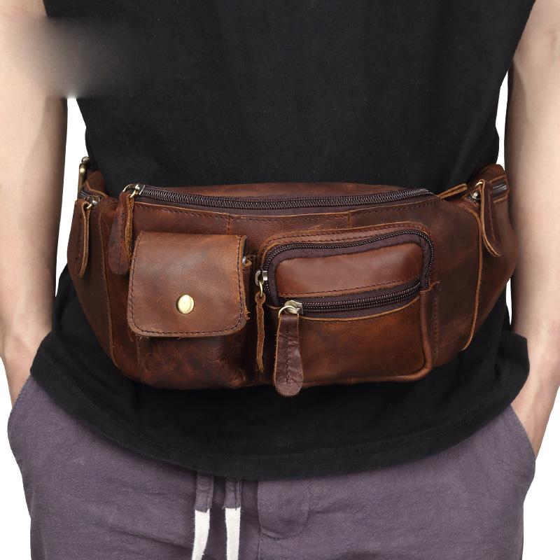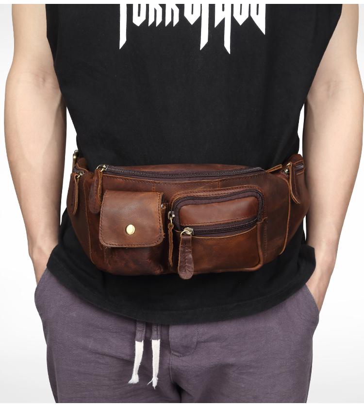 Style: Cool Brown LEATHER MENS FANNY PACK BUMBAG Vintage WAIST BAGS FOR MEN