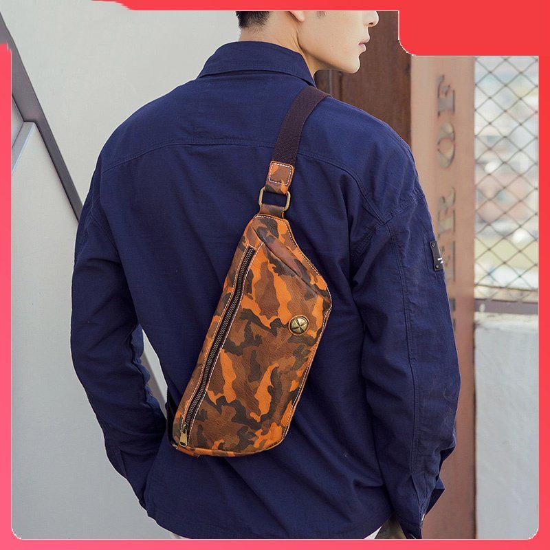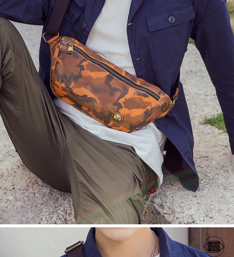 Style: Badass Leather Fanny Pack Men's Yellow Camouflage Chest Bag Hip Bag Waist Bag For Men