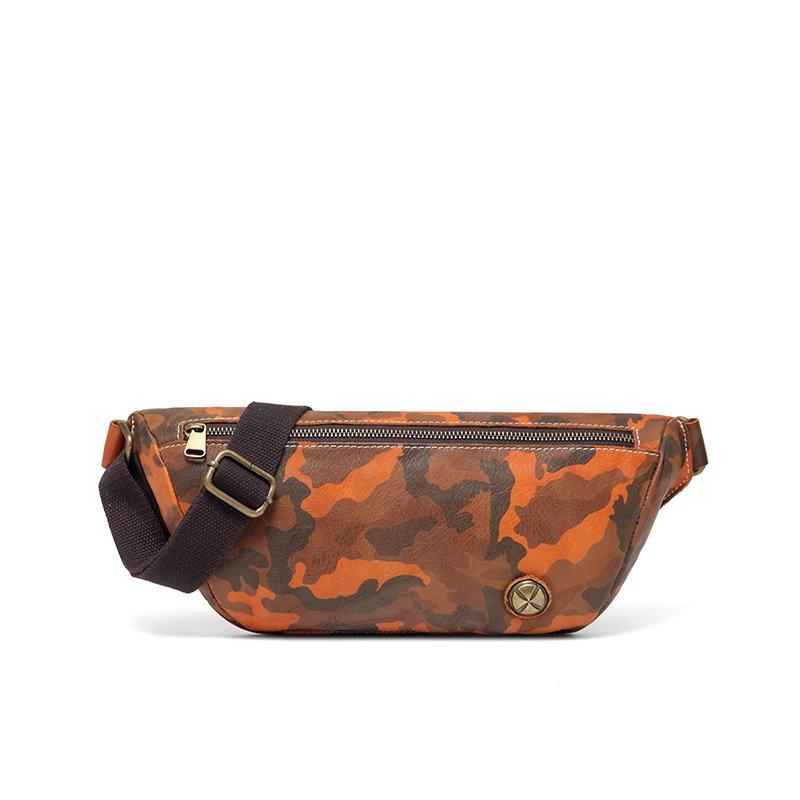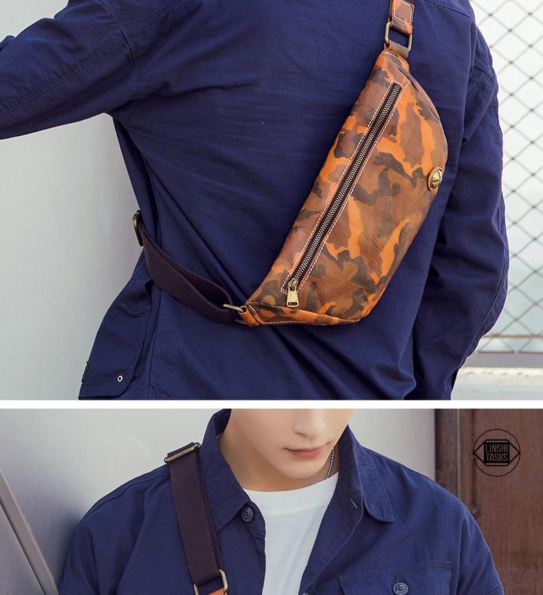 Design: Badass Leather Fanny Pack Men's Yellow Camouflage Chest Bag Hip Bag Waist Bag For Men