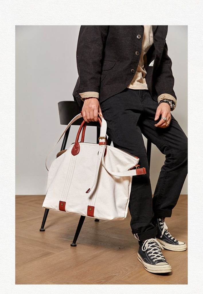 Style: Canvas Cool Mens Tote Bag 15 inches Canvas Handbag Canvas Tote for Men Women