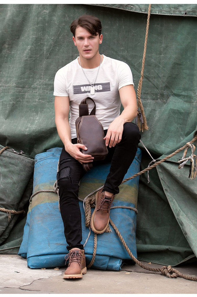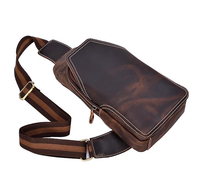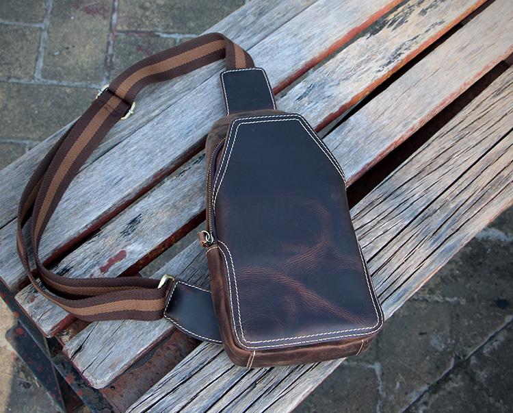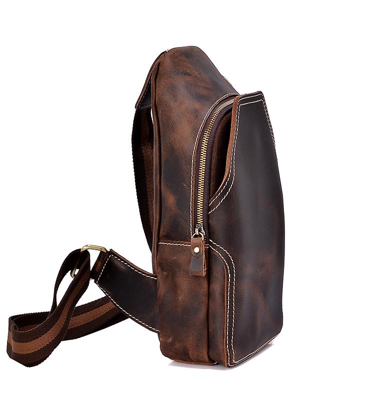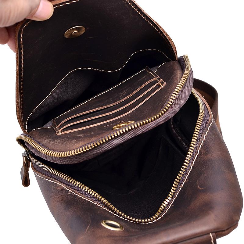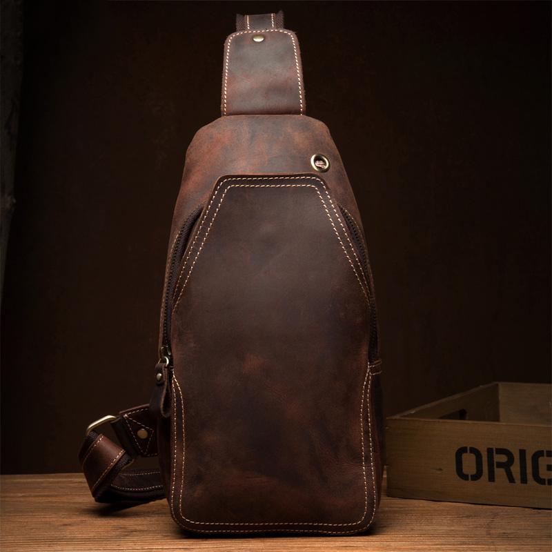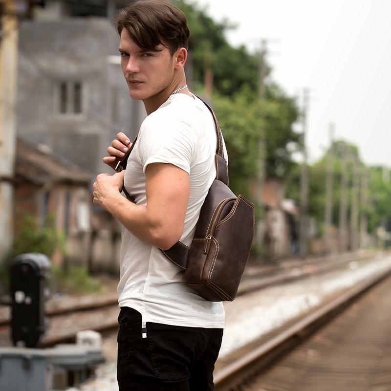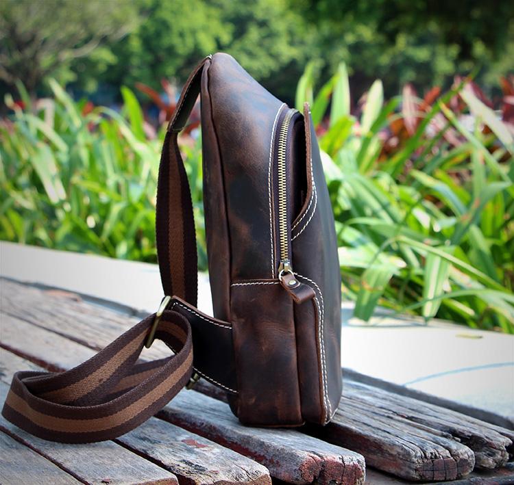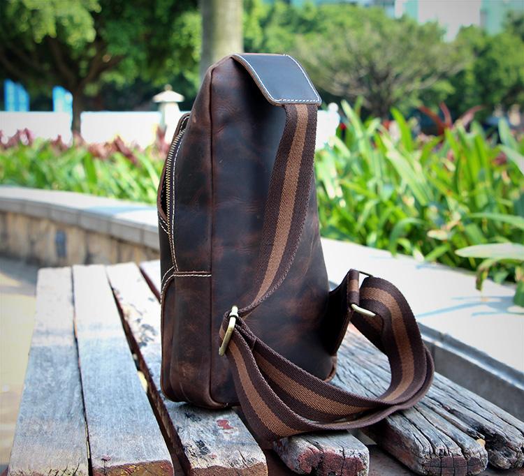 Design: Dark Brown Casual Leather Mens 8 inches Sling Bags Chest Bags One Shoulder Backpacks for Men