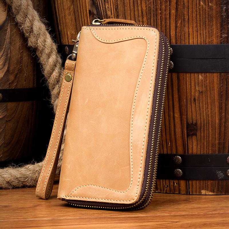 Cool Dark Brown Mens long Wallet Wristlet Wallet Clutch Wallet Yellow Brown Long Wallets for Men