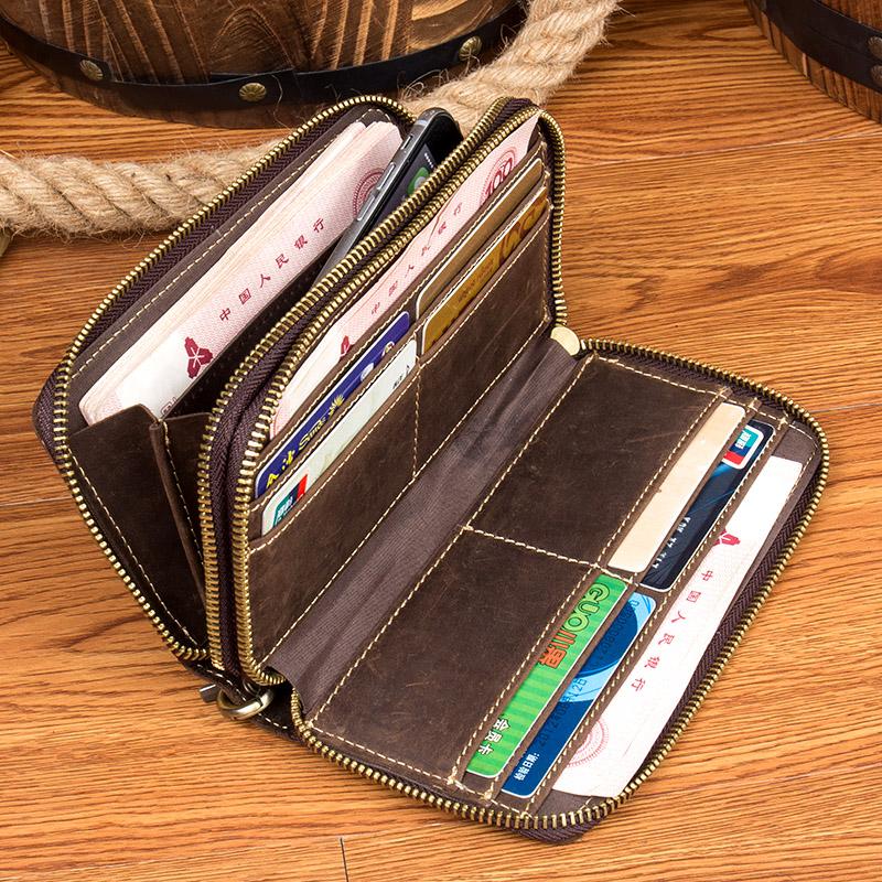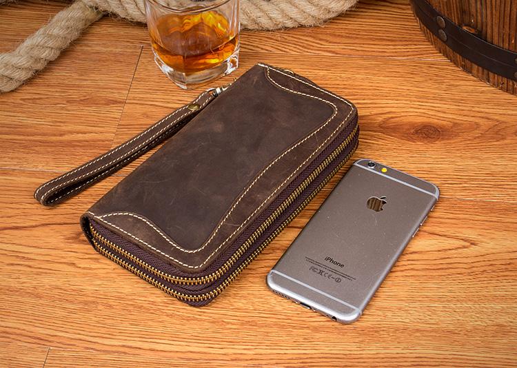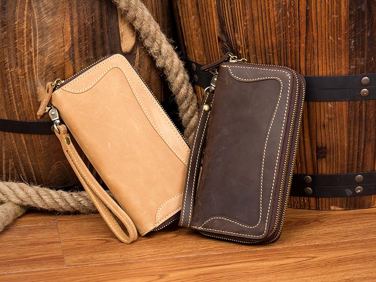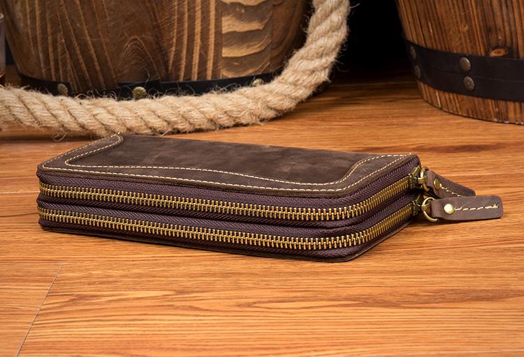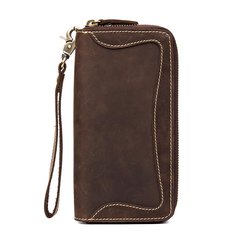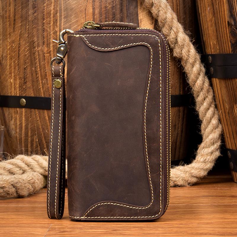 Style: Dark Brown Cool Mens long Wallet Wristlet Bag Clutch Bag Yellow Brown Long Wallets for Men
