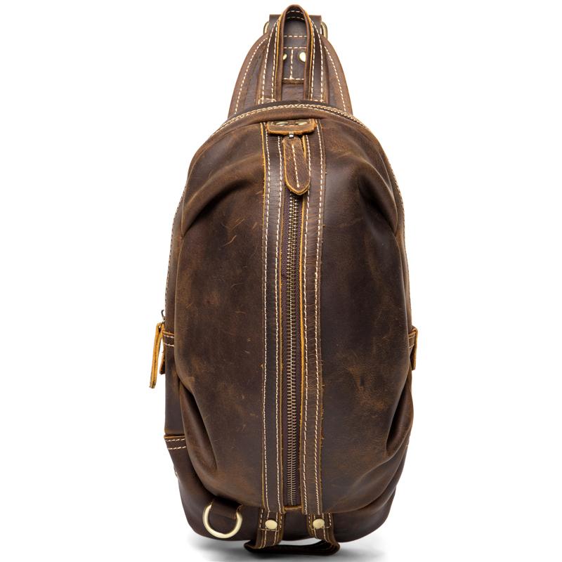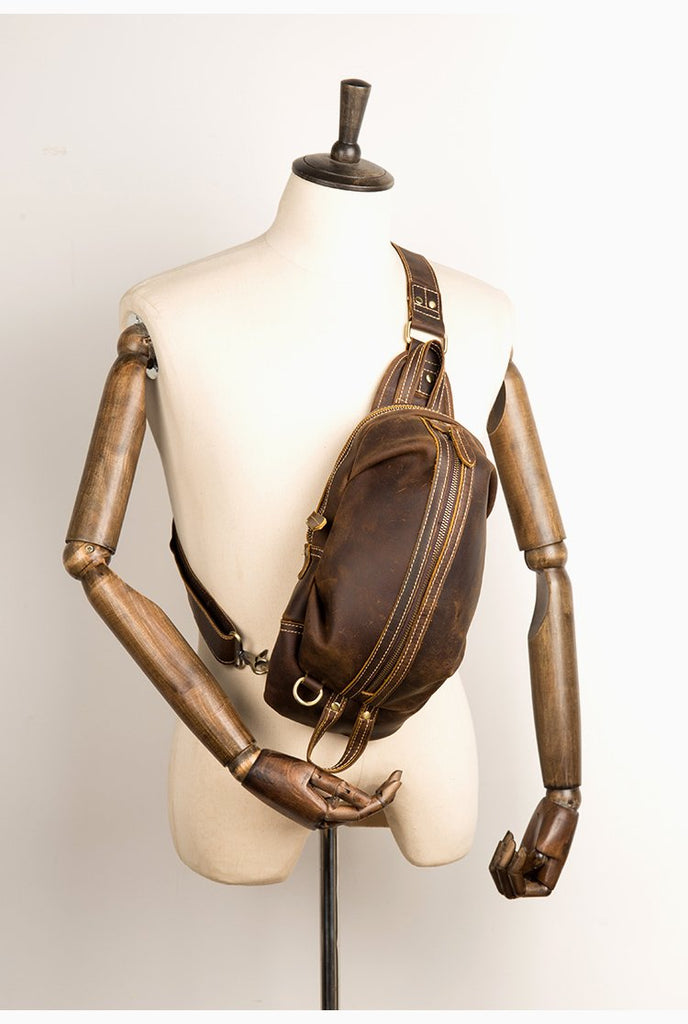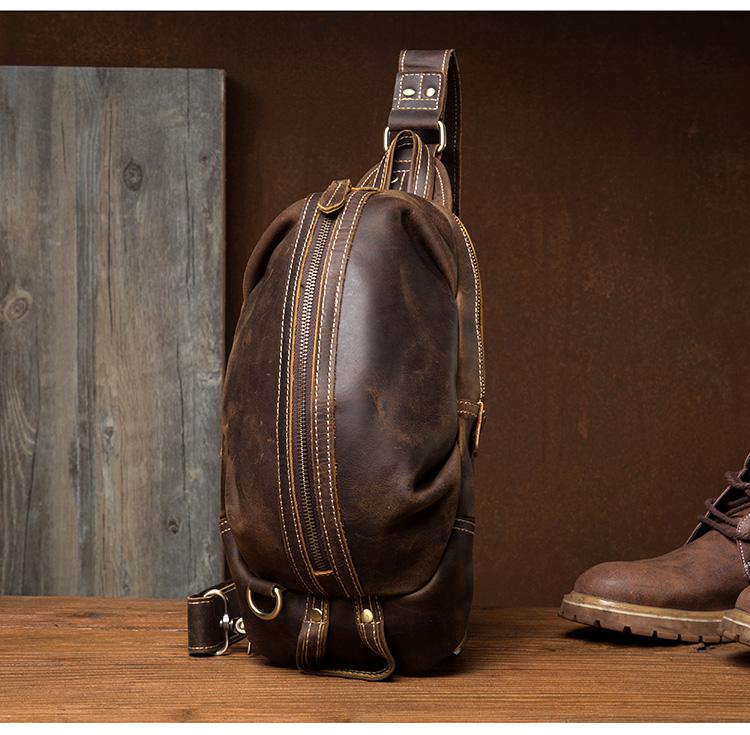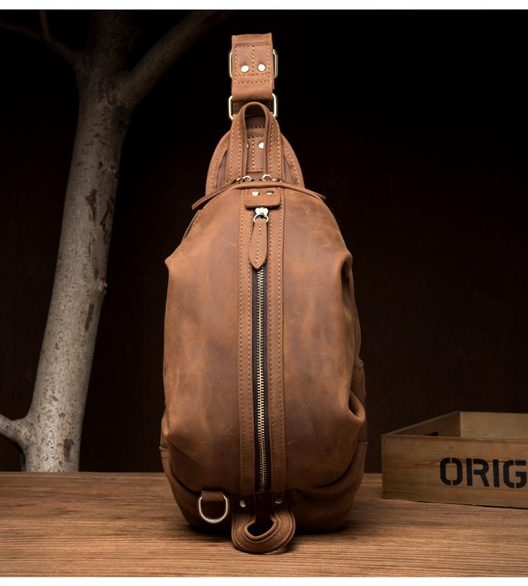 Design: Dark Brown Leather Mens Cool 8 inches Sling Bags Light Brown Crossbody Bag Chest Bag for men