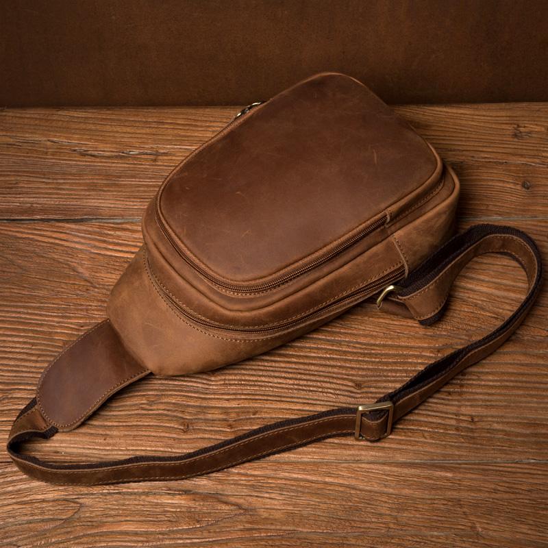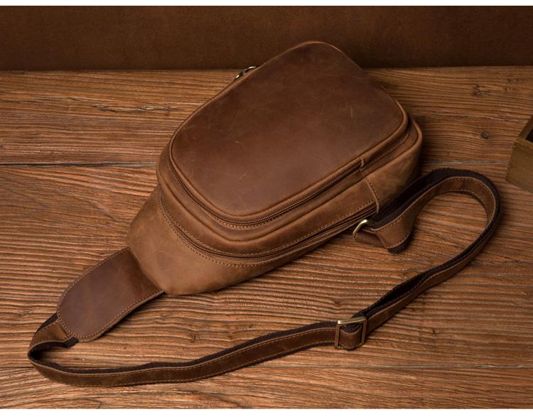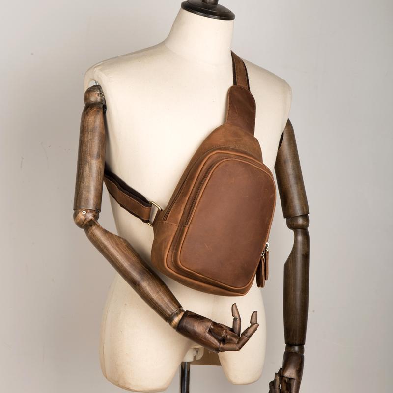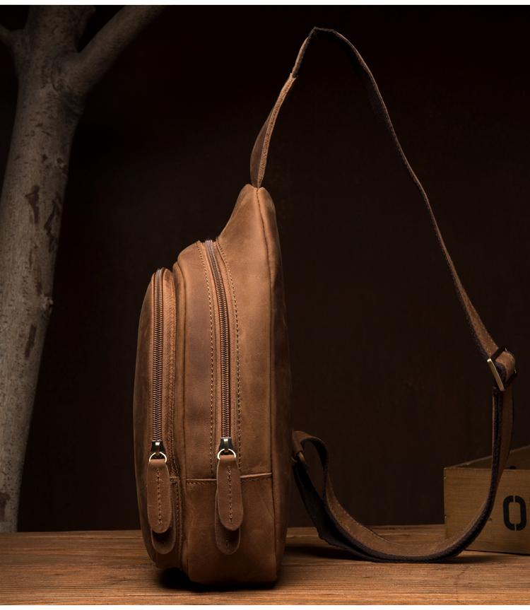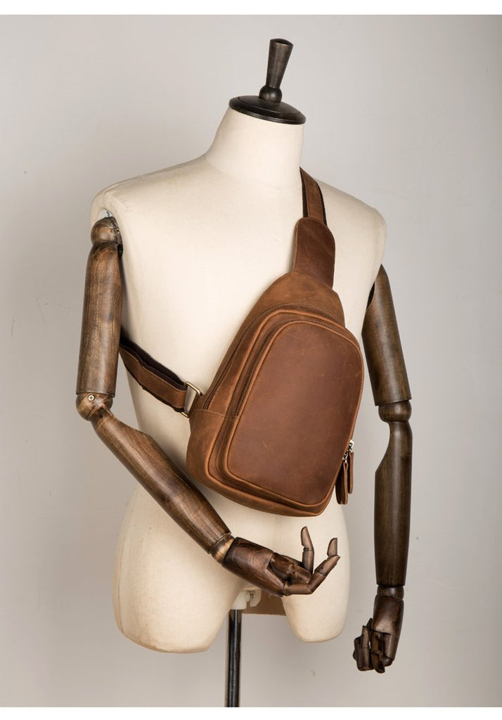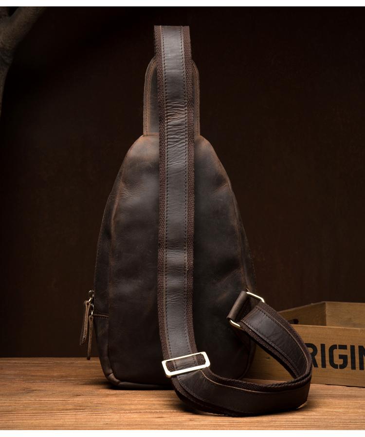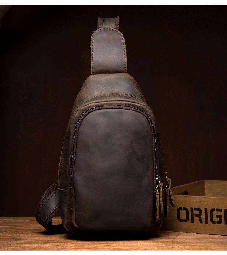 Design: Dark Brown Leather Mens Cool Sling Bag Crossbody Bag Brown Chest Bag for men