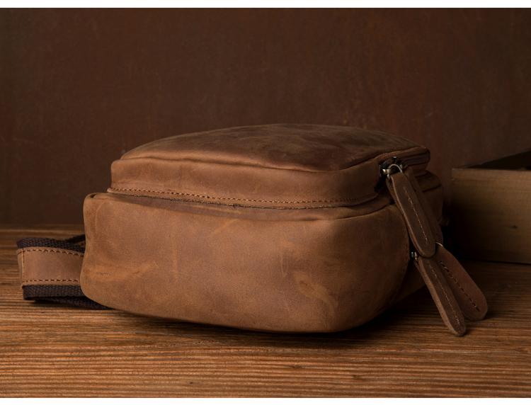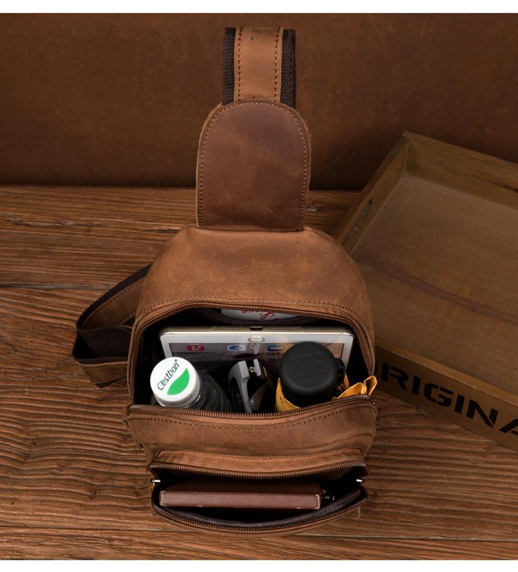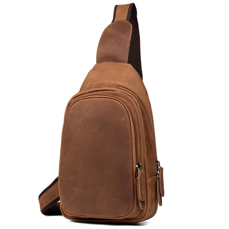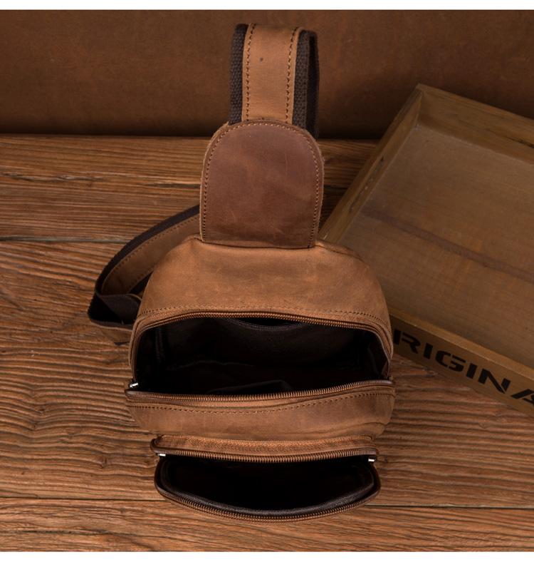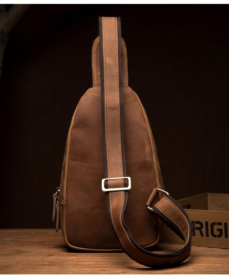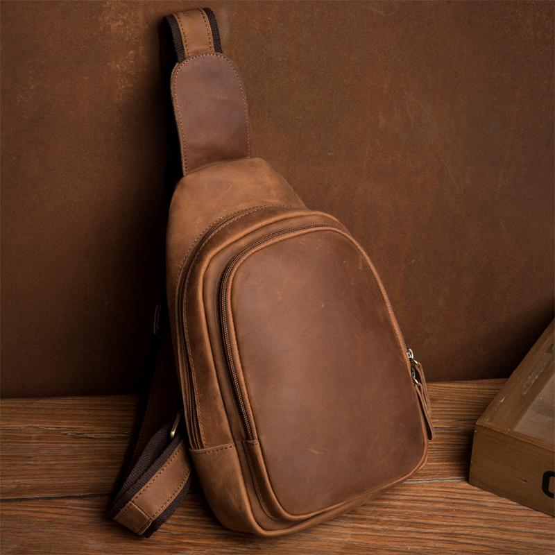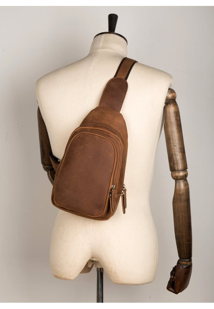 Design: Dark Brown Leather Mens Cool Sling Bag Crossbody Bag Brown Chest Bag for men