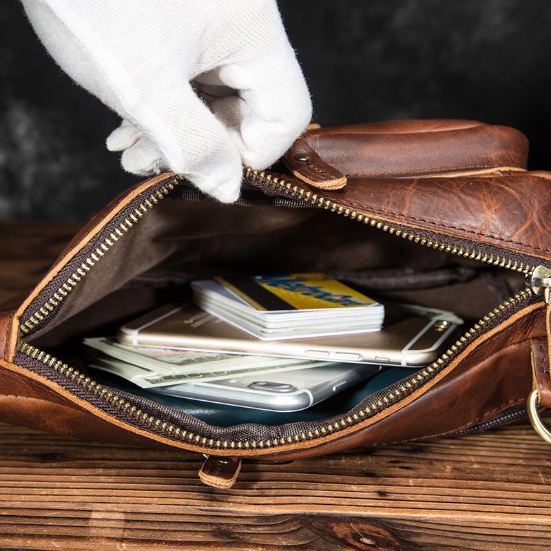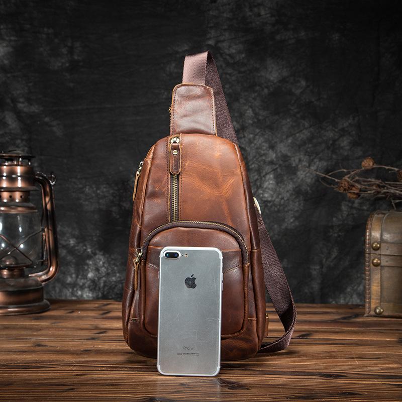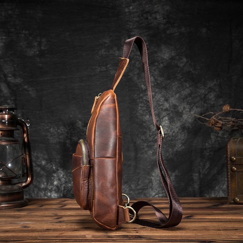 Design: Cool Brown Leather Men's Sling Bag Chest Bag Vintage One Shoulder Backpack For Men