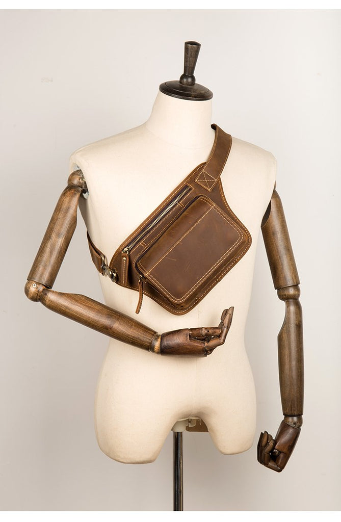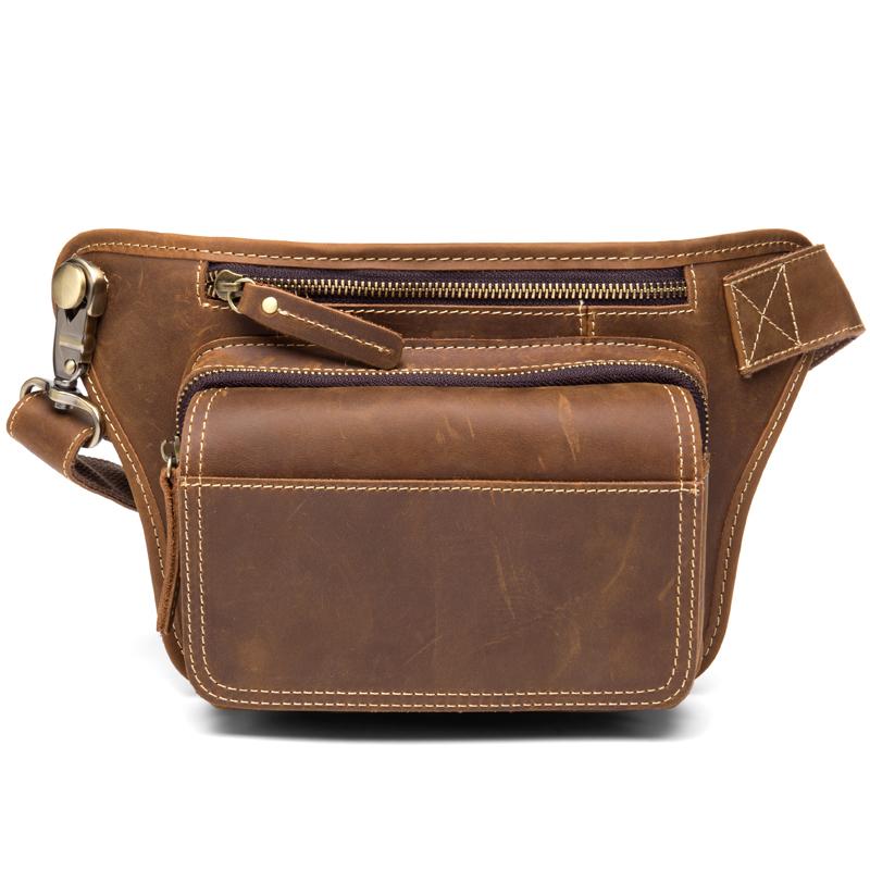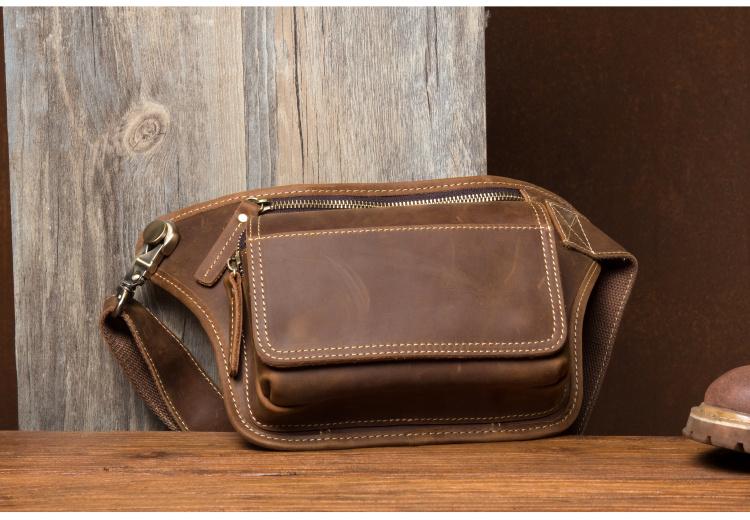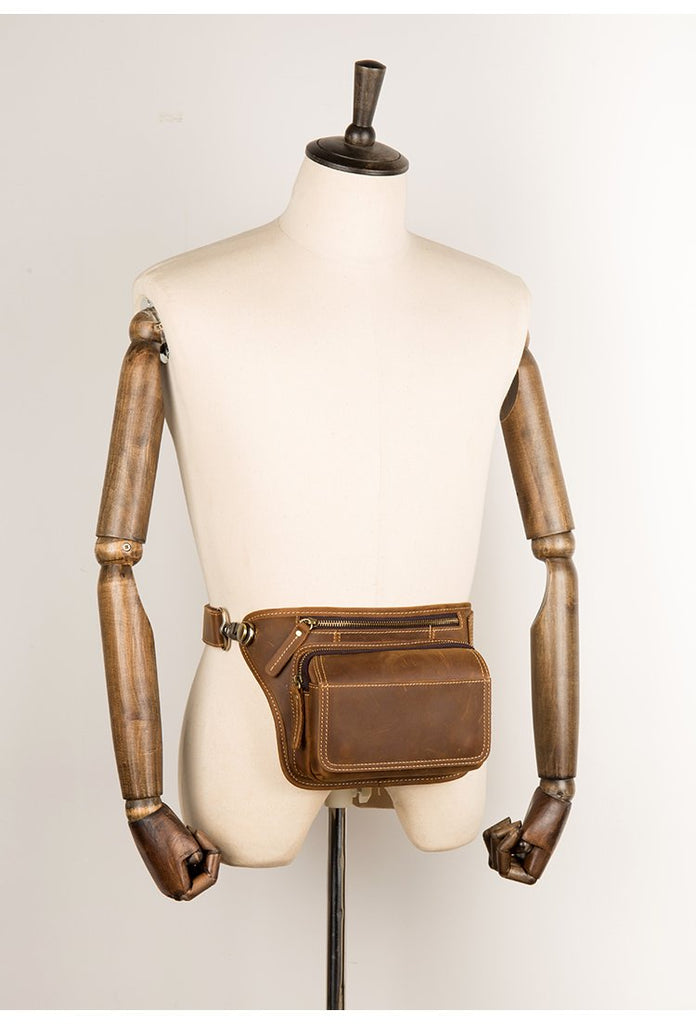 Design: Light Brown Leather Fanny Pack Mens Waist Bags Hip Pack Belt Bags Bumbags for Men