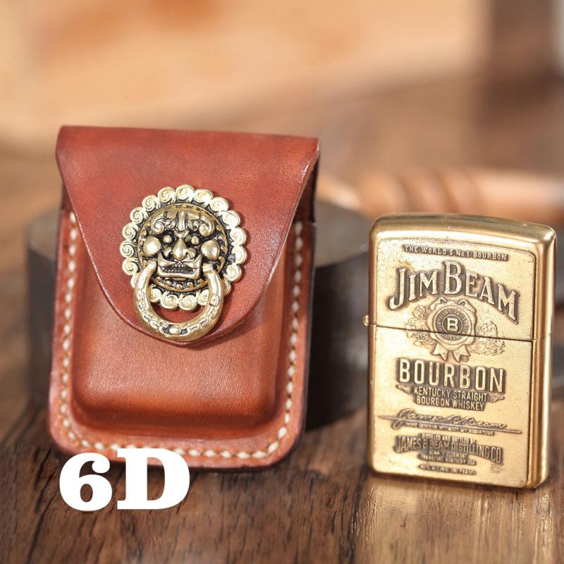 Design: Light Brown Leather Mens Holster Zippo Lighter Case Standard Zippo Lighter Holder with Belt Clip For Men