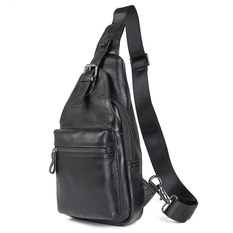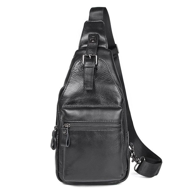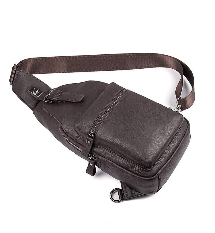 Design: Black Leather Men's Sling Bag Coffee Chest Bag One Shoulder Backpack For Men