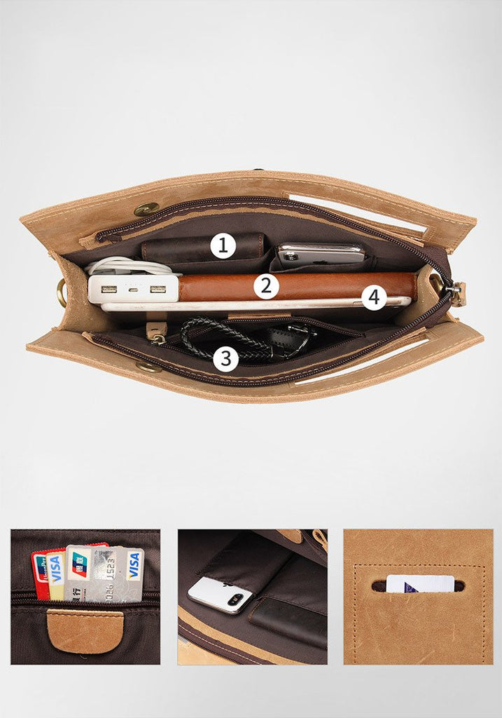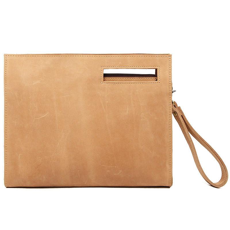 Design: Brown Leather Men's File Bag Clutch Bag Side Bag Wristlet Bag For Men
