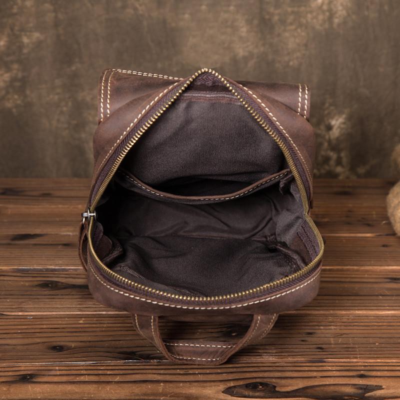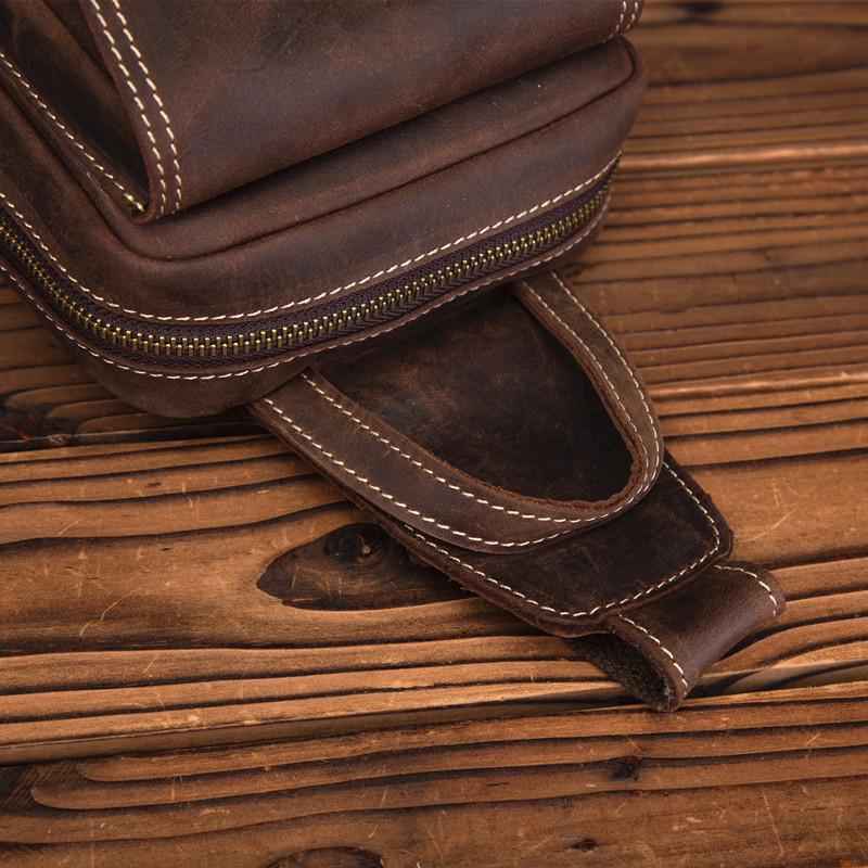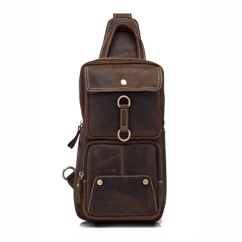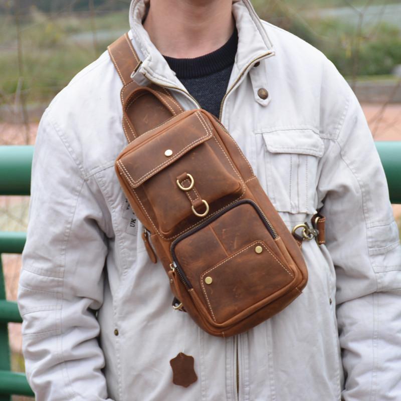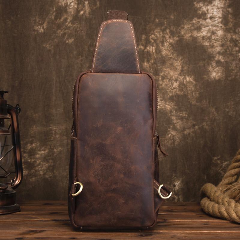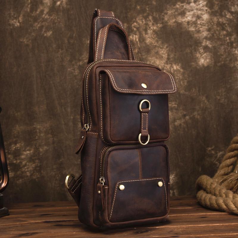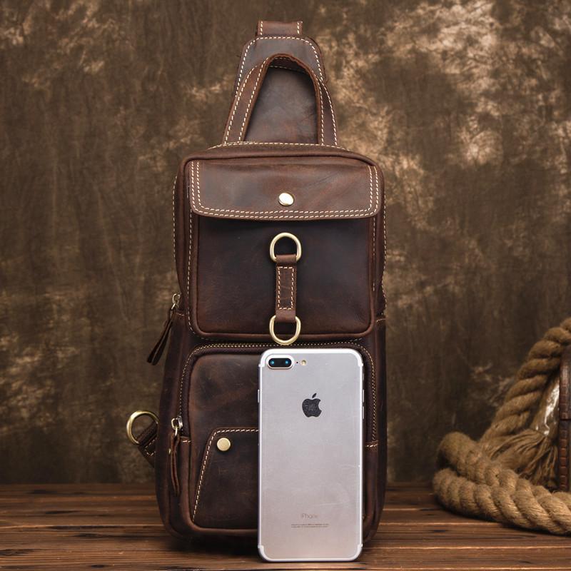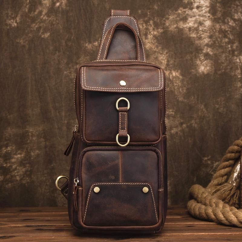 Design: Cool Brown Leather Men's Sling Bag Chest Bag Brown One Shoulder Backpack For Men