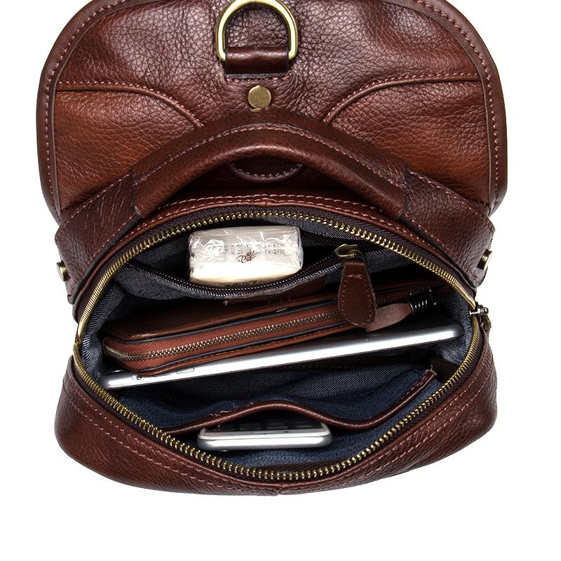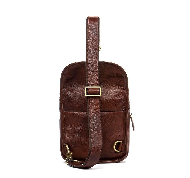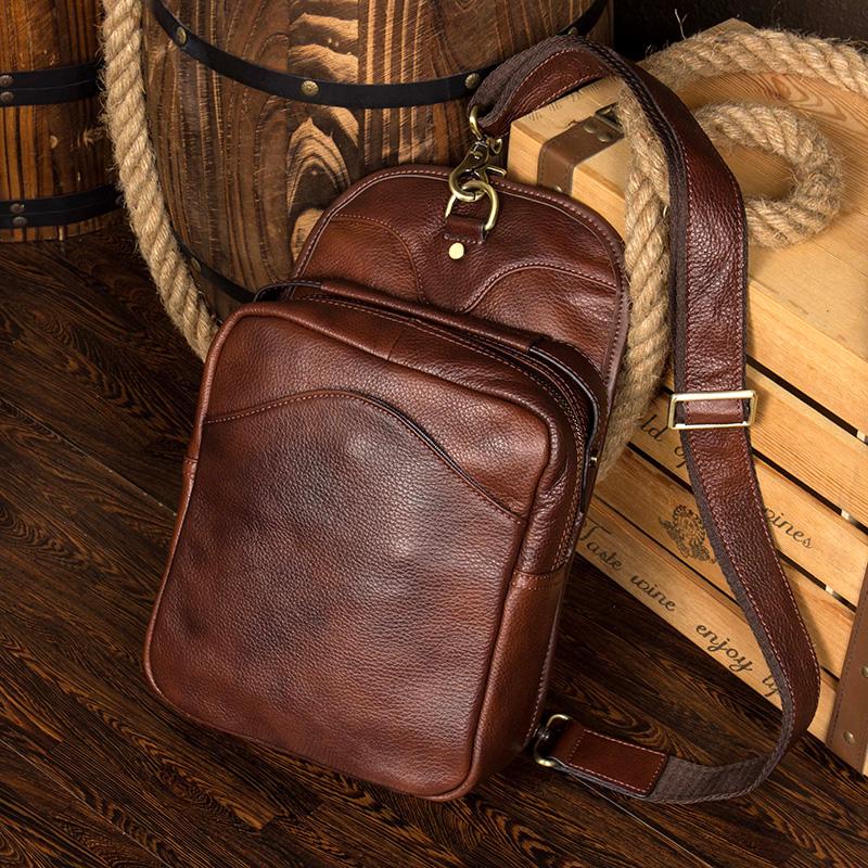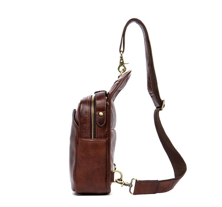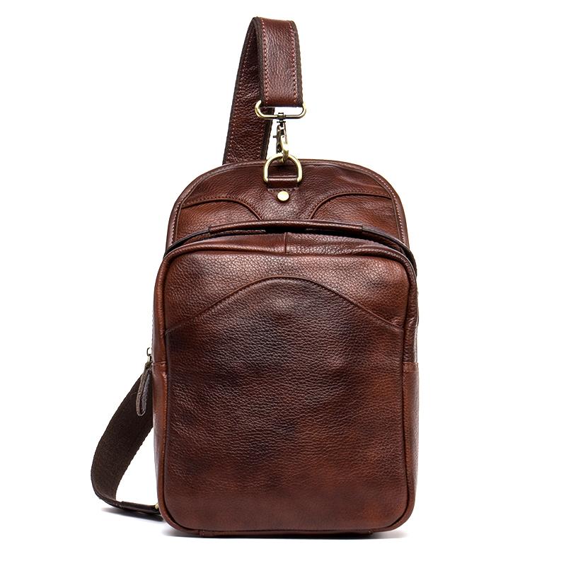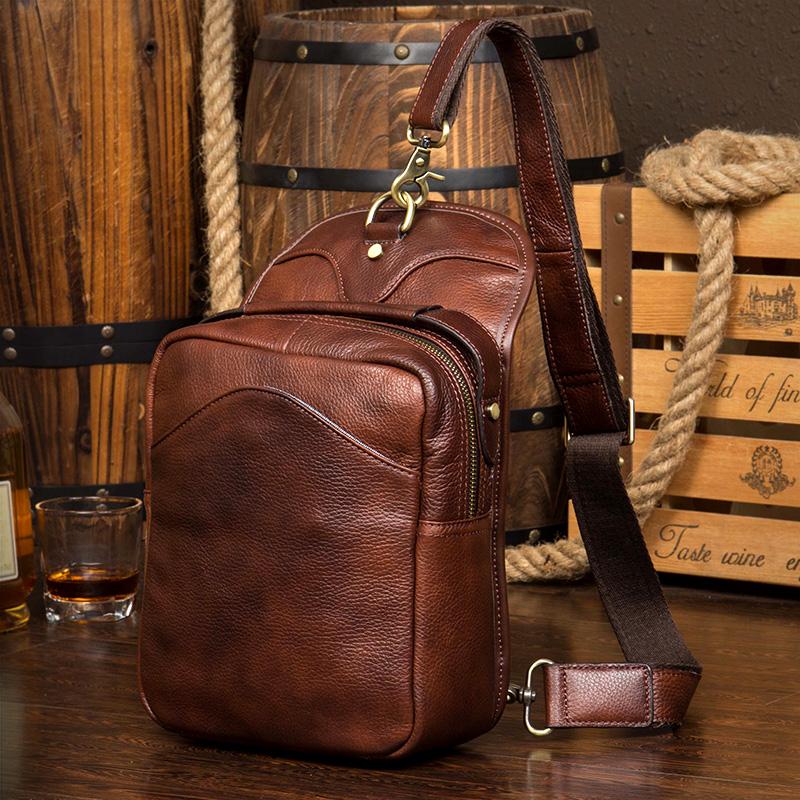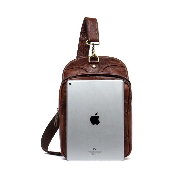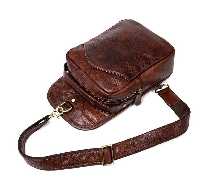 Design: Red Brown Casual Leather Mens 8 inches Sling Bags Chest Bags One Shoulder Backpack for Men