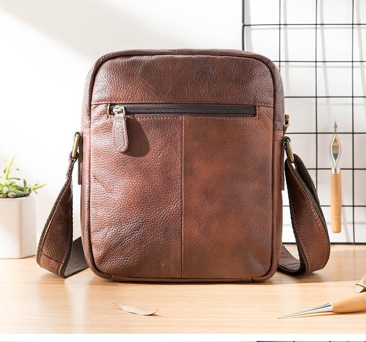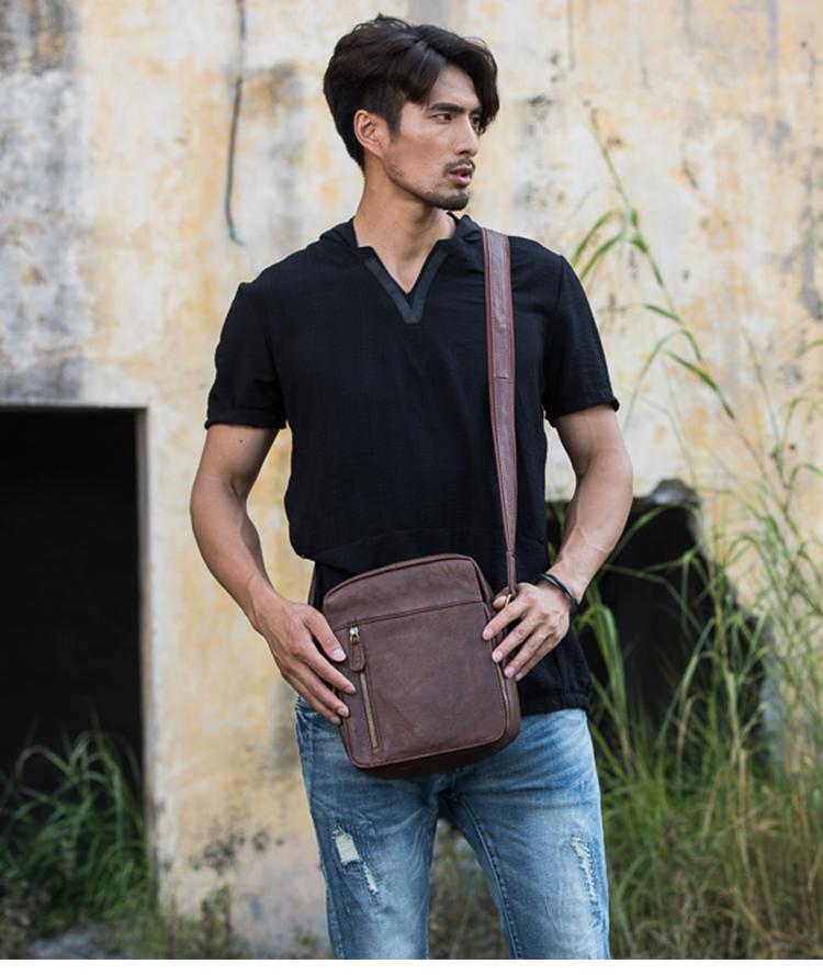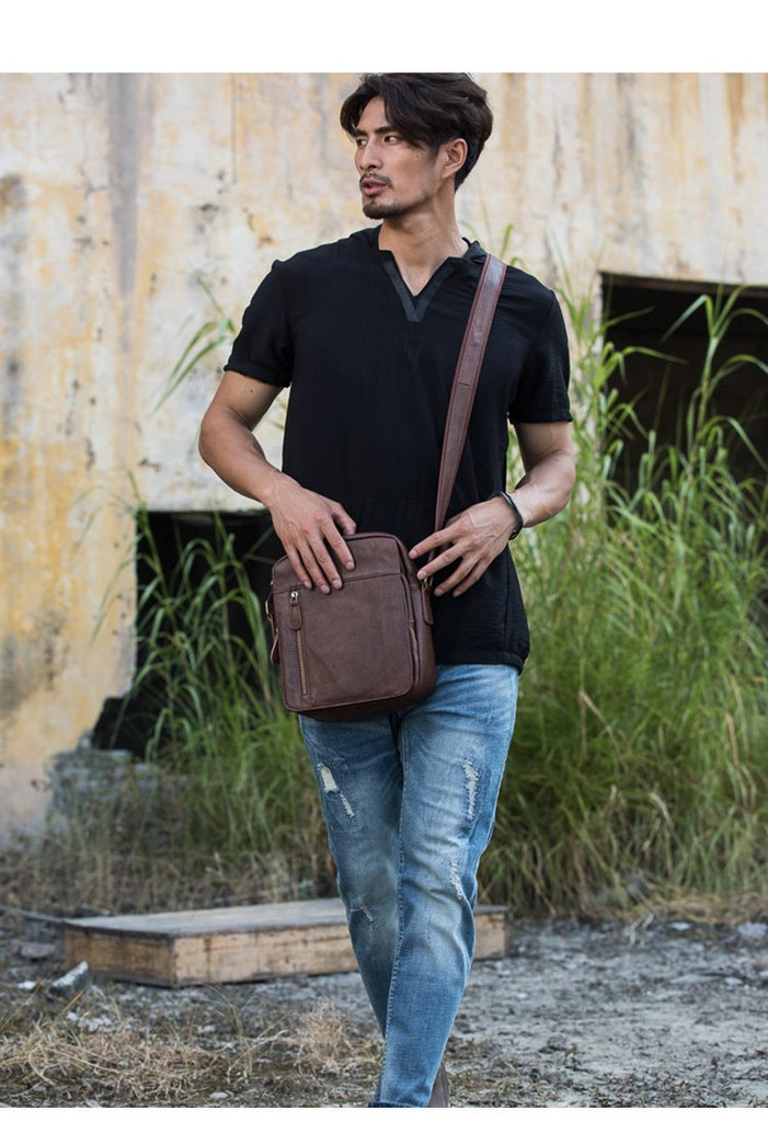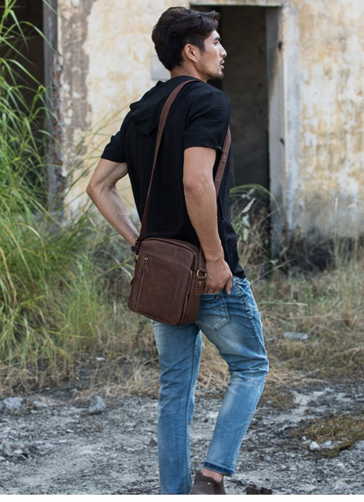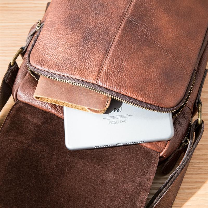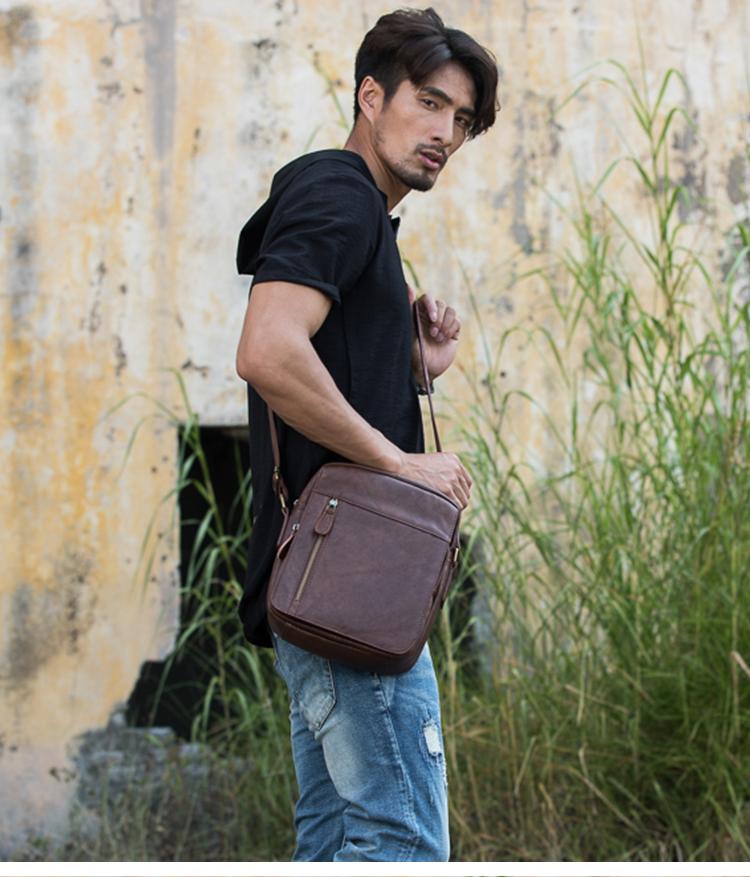 Design: Red Brown Cool Leather Mens 10 inches Vertical Shoulder Bag Casual Messenger Bags Side Bag for Men