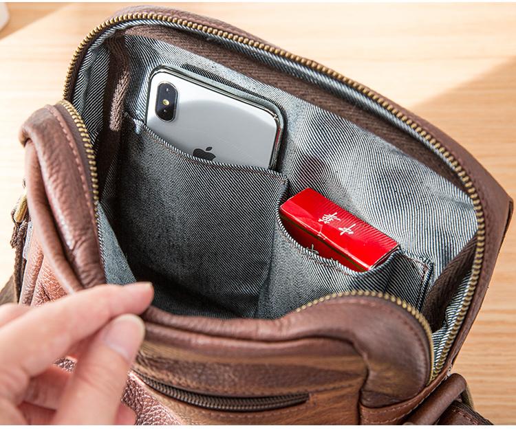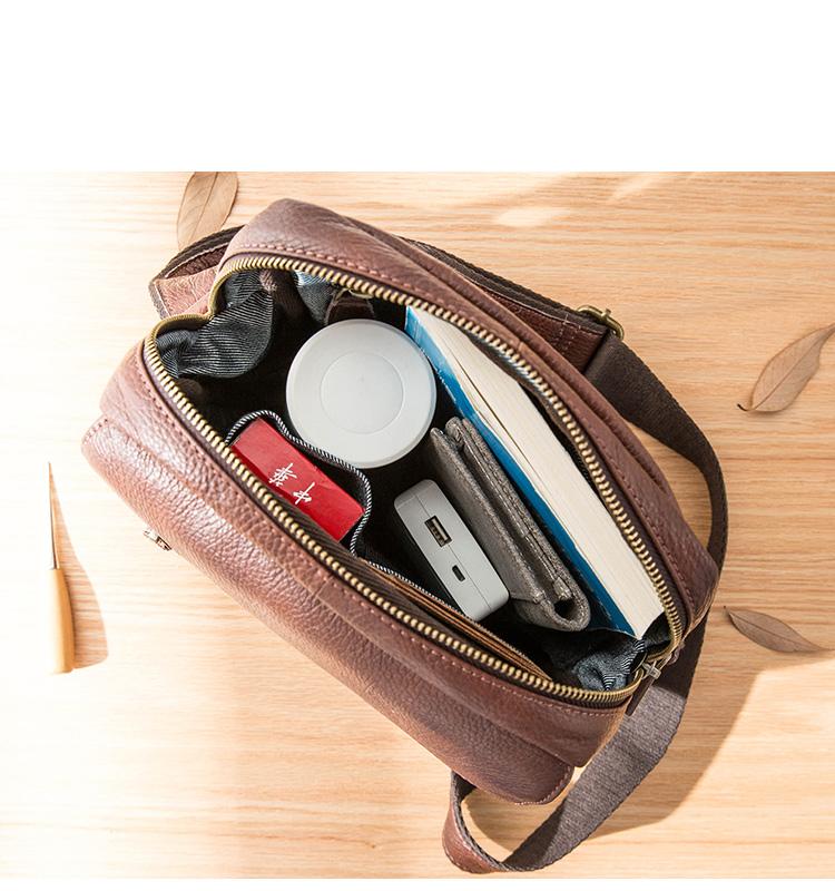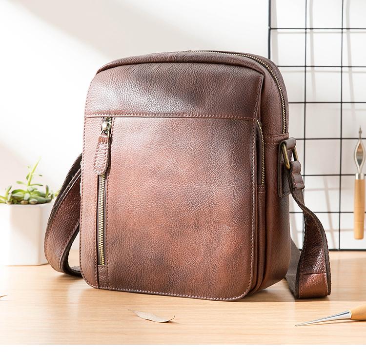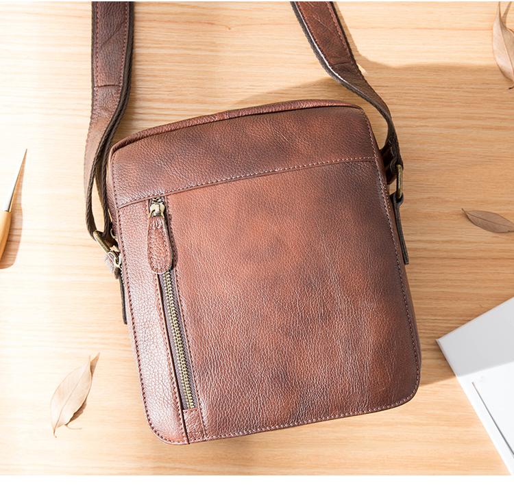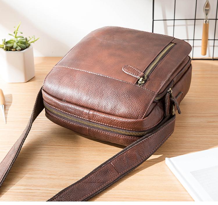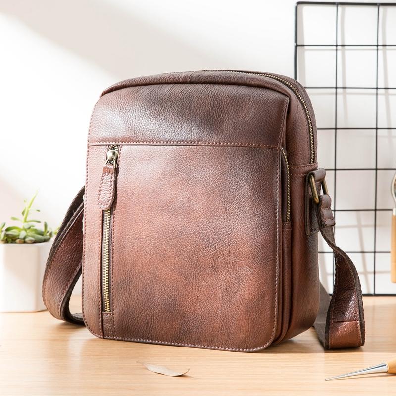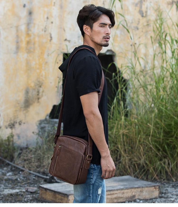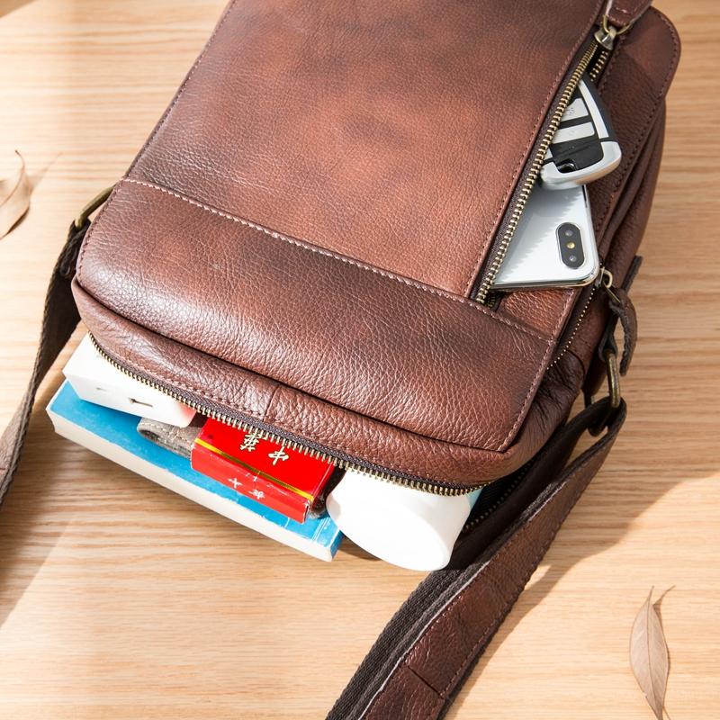Design: Red Brown Cool Leather Mens 10 inches Vertical Shoulder Bag Casual Messenger Bags Side Bag for Men