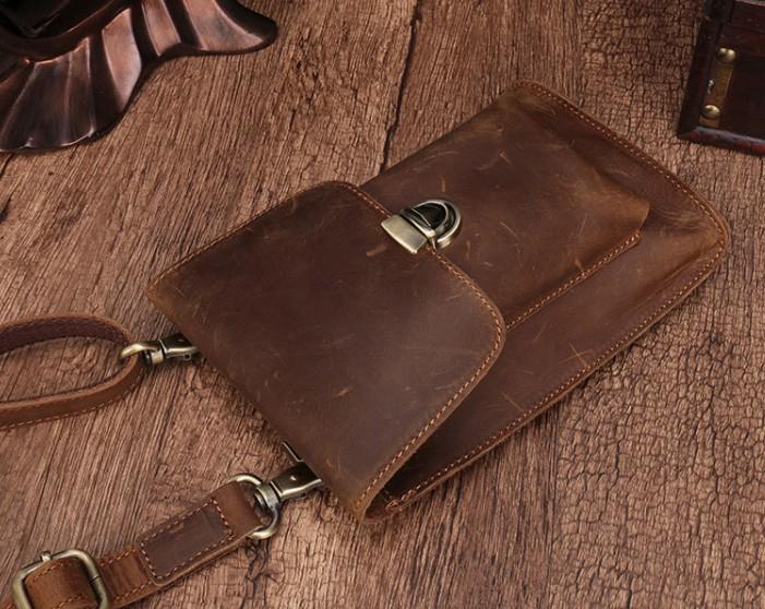 Style: Genuine Leather Cool Chest Bag Sling Bag Crossbody Bag Travel Bag Hiking Bag For Mens