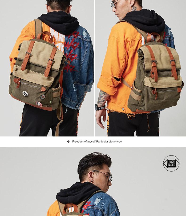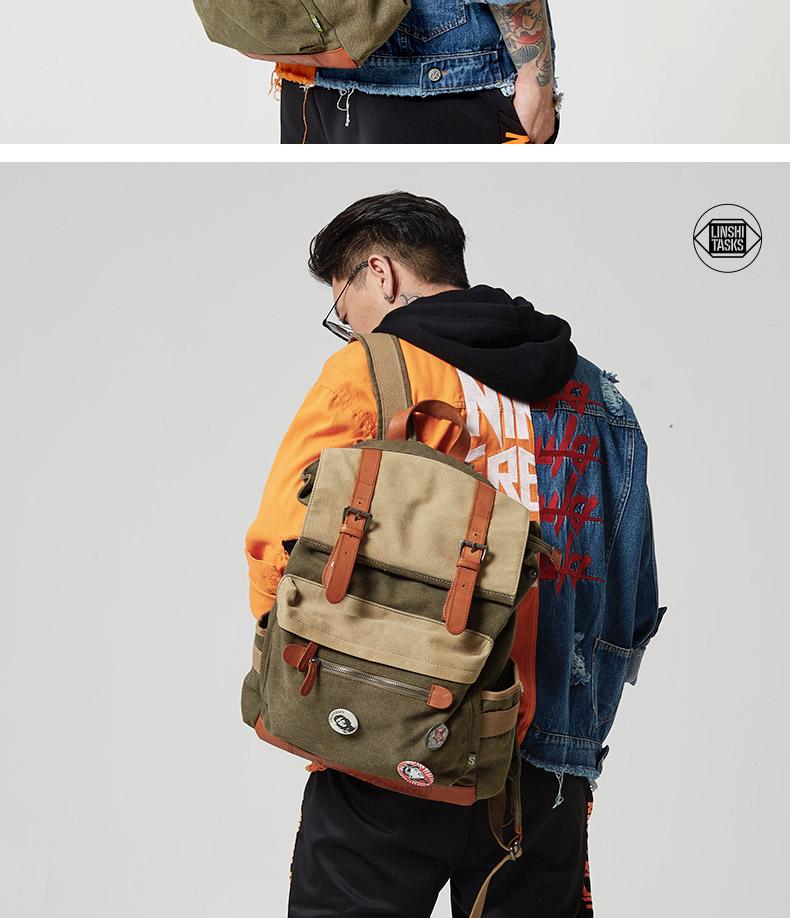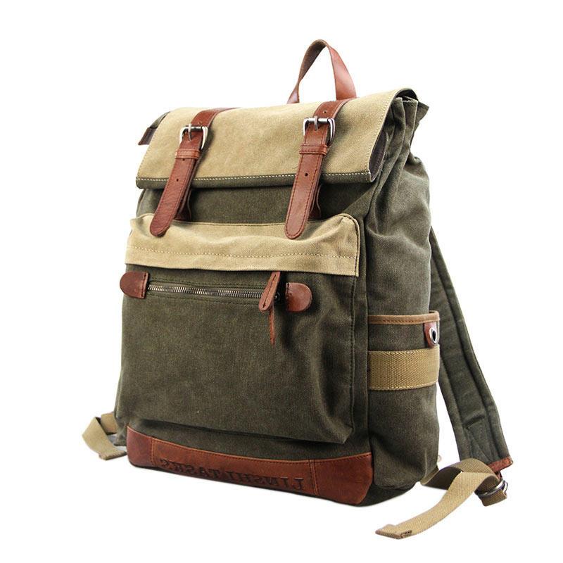 Design: Army Green Canvas Leather Mens Large Backpack School Backpack Canvas Travel Backpack For Men