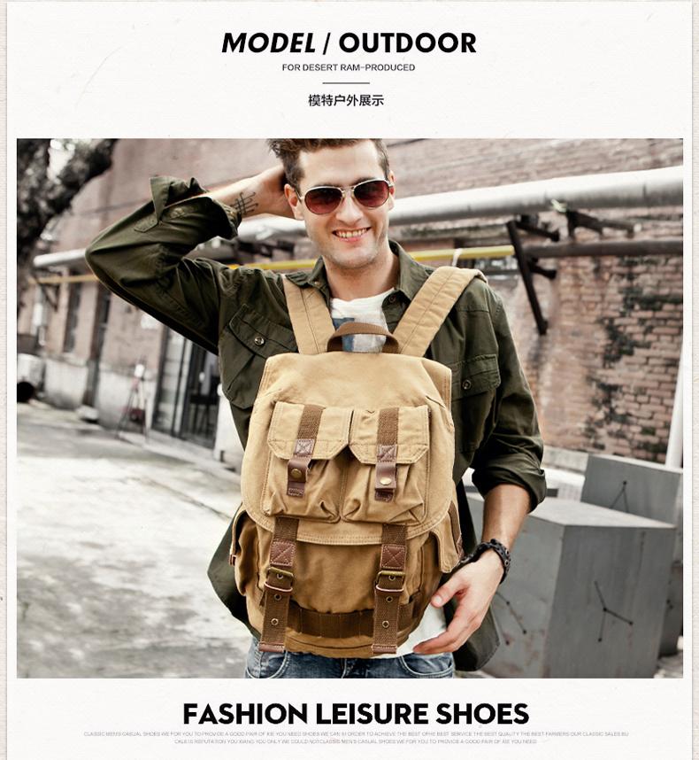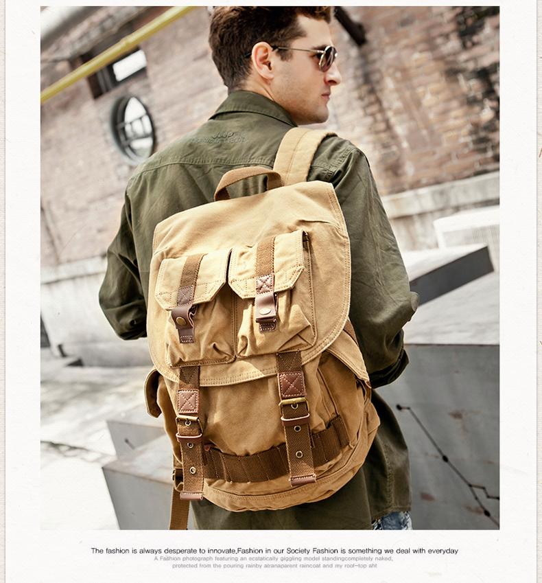Design: Army Green CANVAS Mens Large Fashion Khaki Travel Bag College Backpack Hiking Bag For Men