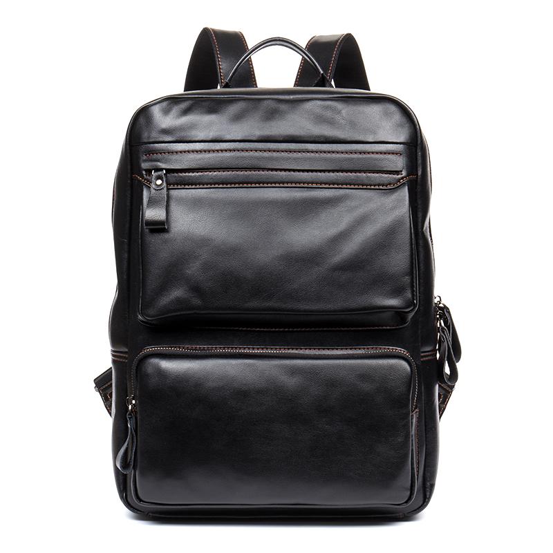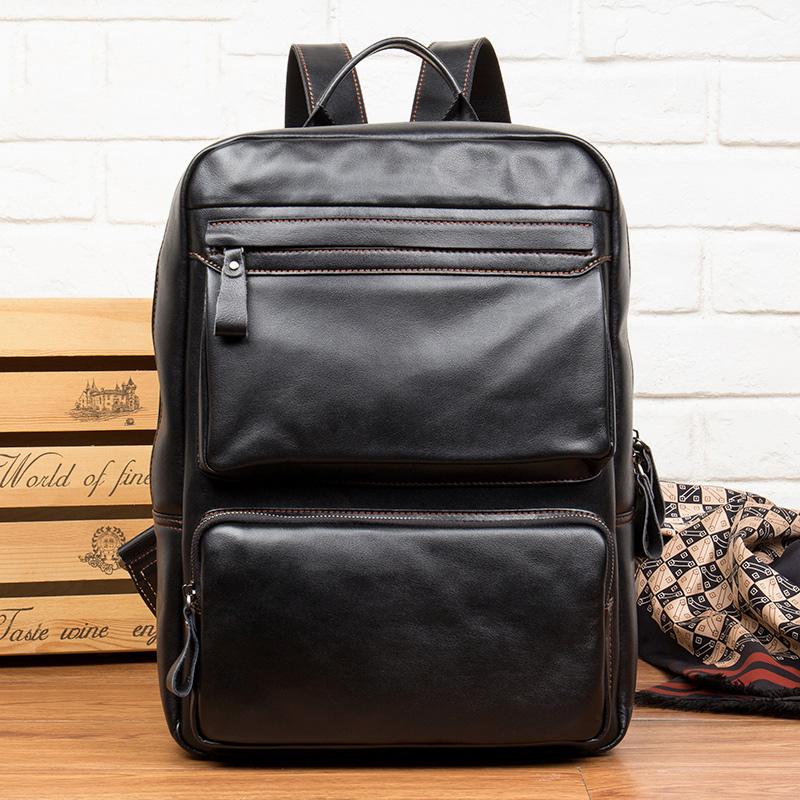 Design: Black Business Mens Leather 14-inch Computer Backpacks Cool Travel Backpacks School Backpack for men