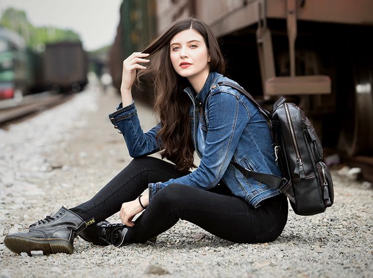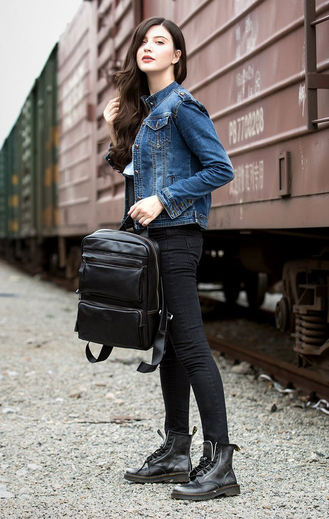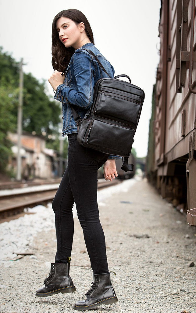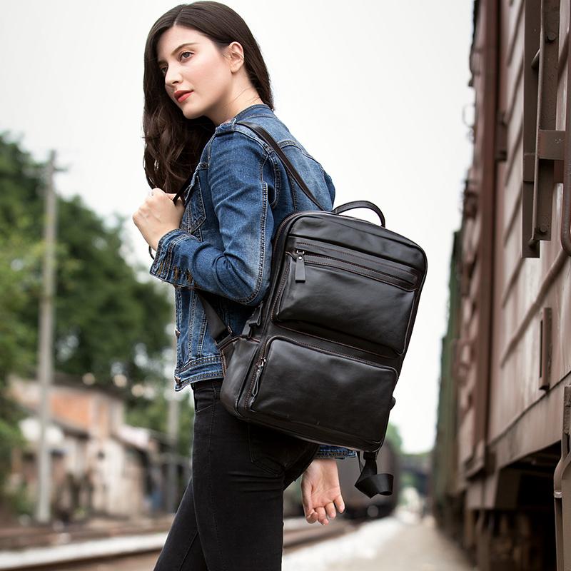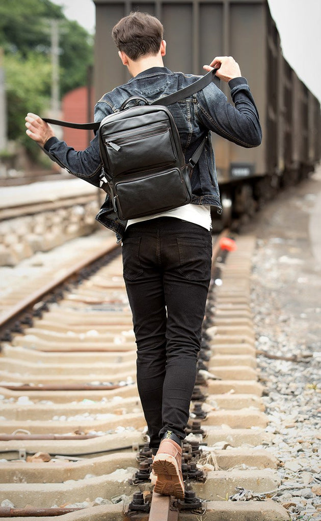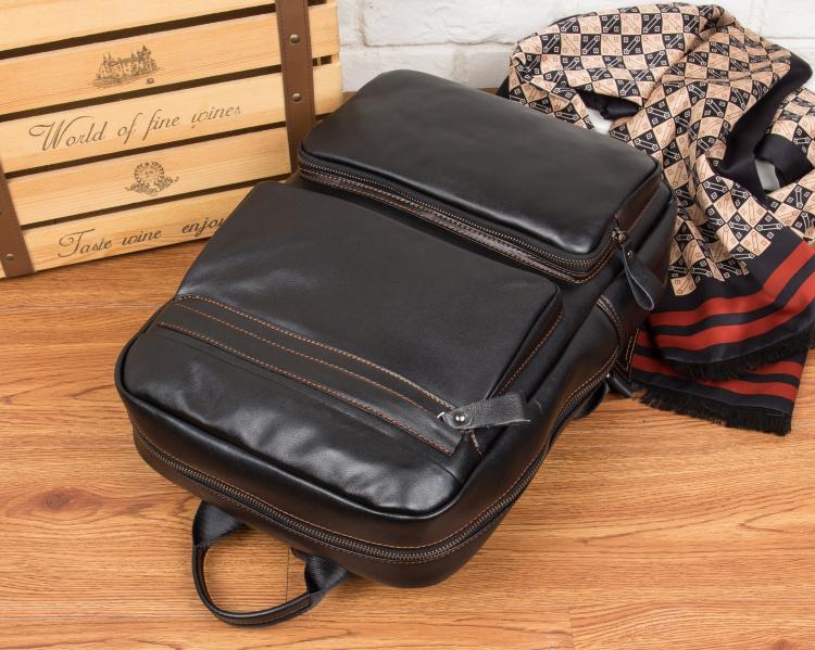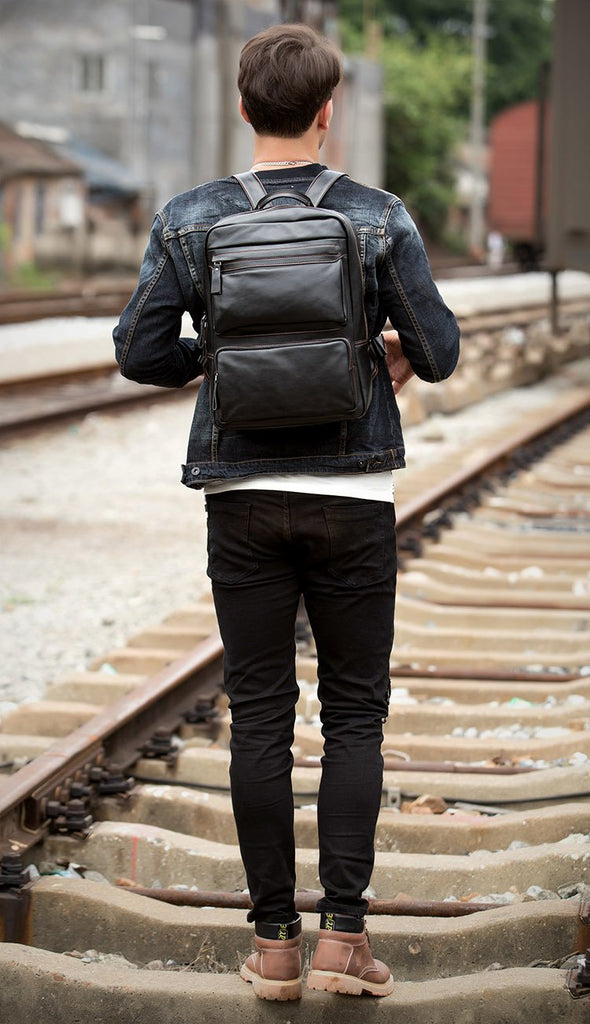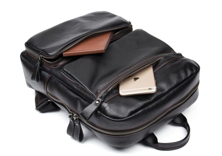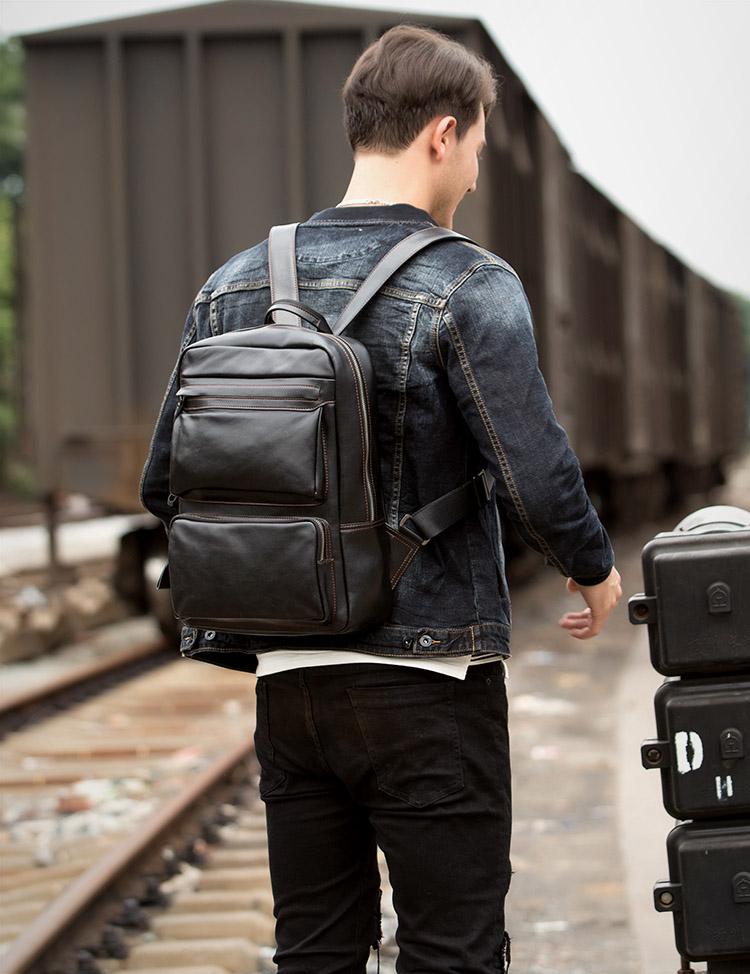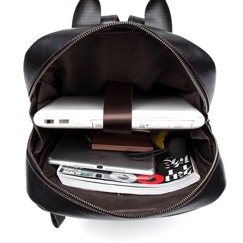 Cool Black Mens Leather 14 inches Computer Backpack College Backpacks School Backpack for men